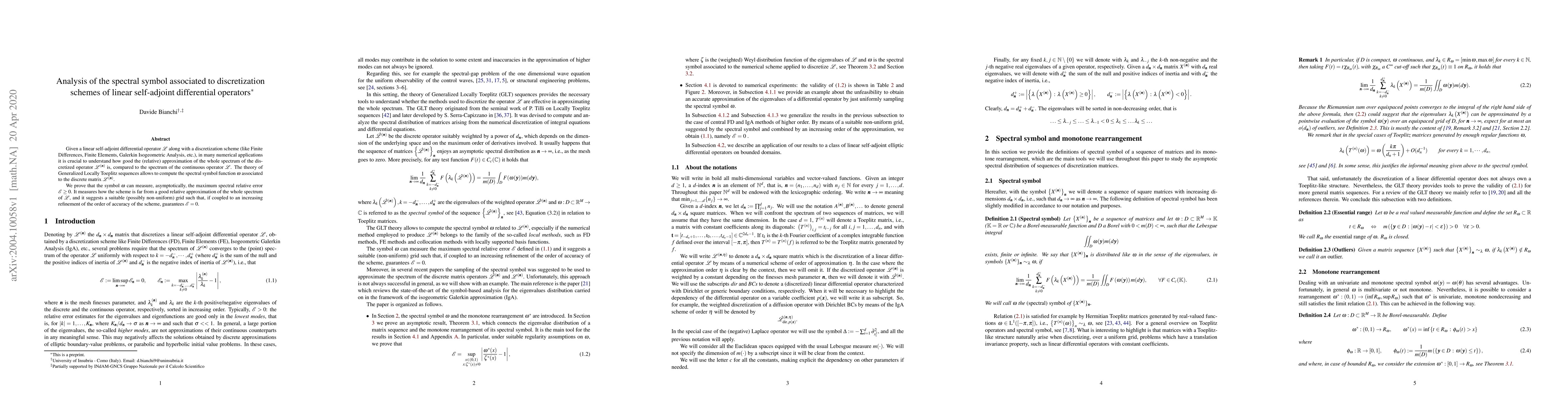 This paper analyzes the spectral symbol associated with discretization schemes for linear self-adjoint differential operators, proving that the symbol can asymptotically measure the maximum spectral relative error. It suggests a method to refine the grid and improve the approximation accuracy to achieve zero relative error.