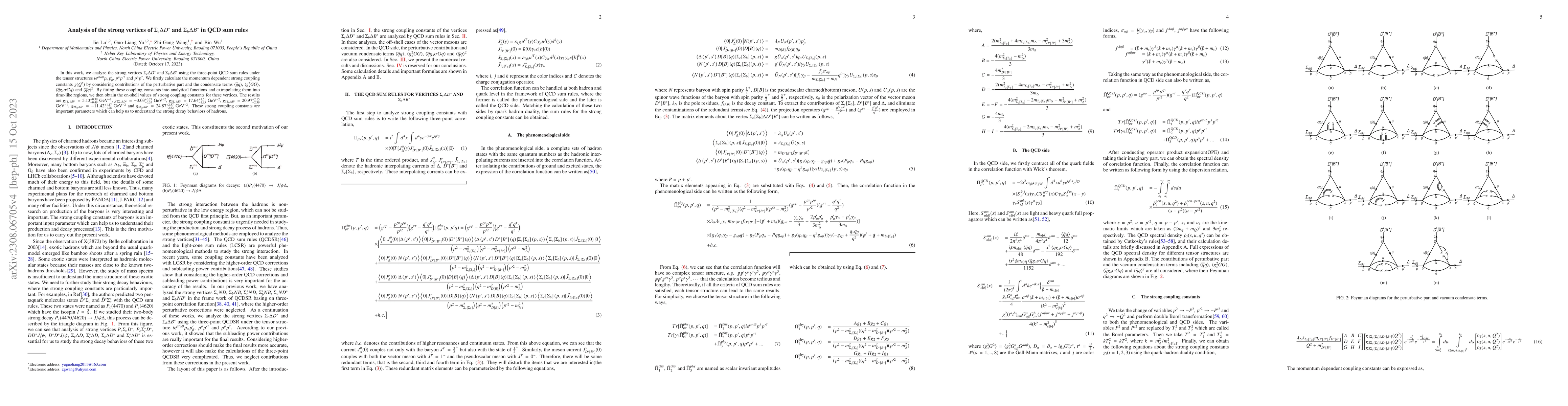 This paper analyzes the strong vertices $\Sigma_{c}\Delta D^{*}$ and $\Sigma_{b}\Delta B^{*}$ using QCD sum rules, determining on-shell values for the coupling constants that are crucial for understanding hadron decay behaviors. The results provide specific values for these coupling constants, aiding in the study of strong interactions in particle physics.