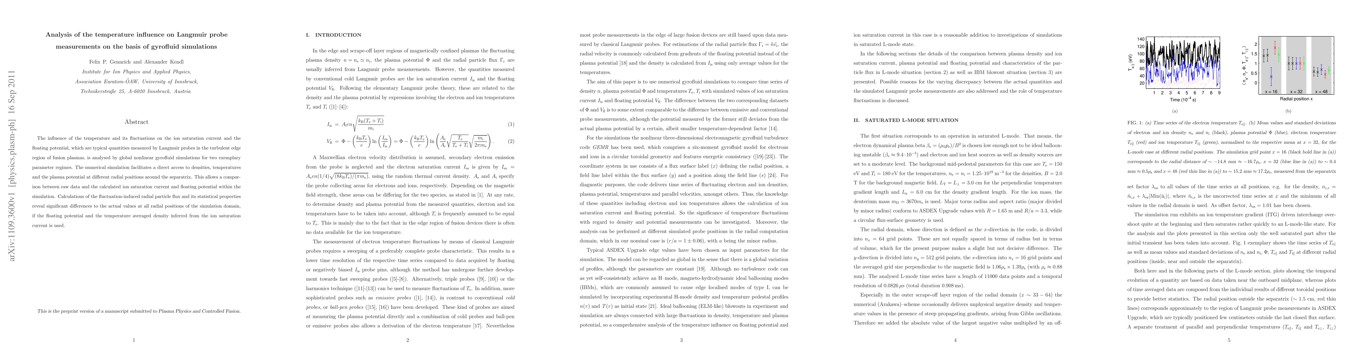 The influence of the temperature and its fluctuations on the ion saturation current and the floating potential, which are typical quantities measured by Langmuir probes in the turbulent edge region of fusion plasmas, is analysed by global nonlinear gyrofluid simulations for two exemplary parameter regimes. The numerical simulation facilitates a direct access to densities, temperatures and the plasma potential at different radial positions around the separatrix. This allows a comparison between raw data and the calculated ion saturation current and floating potential within the simulation. Calculations of the fluctuation-induced radial particle flux and its statistical properties reveal significant differences to the actual values at all radial positions of the simulation domain, if the floating potential and the temperature averaged density inferred from the ion saturation current is used.