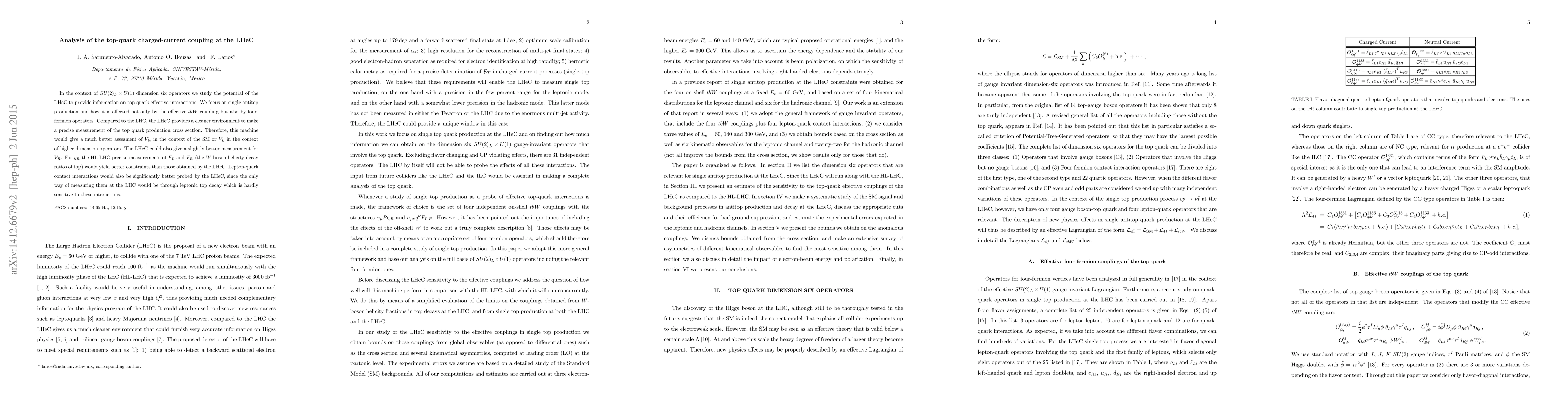 This paper analyzes the potential of the Large Hadron-electron Collider (LHeC) to measure top quark effective interactions, focusing on single antitop production and its dependence on $tbW$ and four-fermion operators. The LHeC offers a cleaner environment than the LHC for precise top quark production cross-section measurements, providing better assessments of $V_{tb}$ and $V_L$.