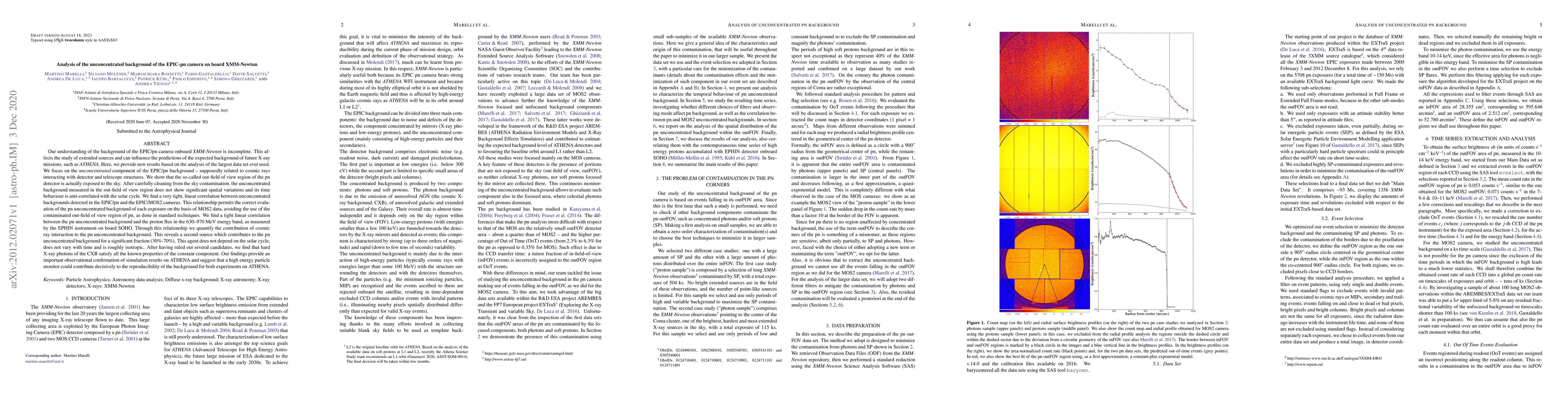 This paper analyzes the unconcentrated background of the EPIC/pn camera on XMM-Newton, revealing that the out-field of view region is sky-exposed and identifying a tight correlation between the unconcentrated background and the proton flux in the 630-970 MeV energy band. It also discovers a second, constant, isotropic source contributing significantly to the background, likely hard X-ray photons from the Cosmic X-ray Background (CXB).