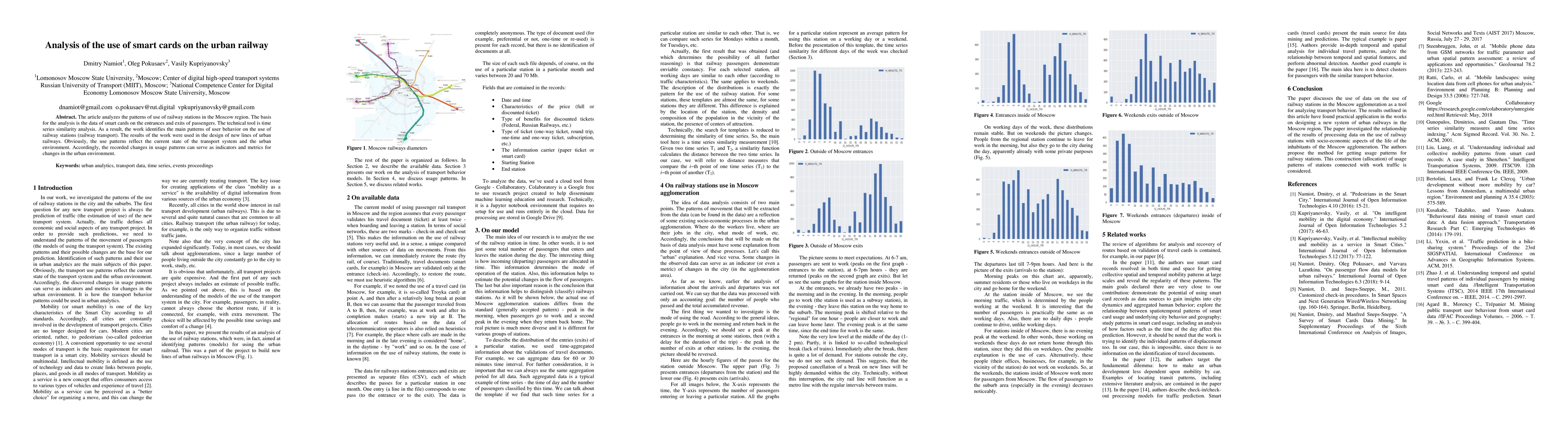 The article analyzes the patterns of use of railway stations in the Moscow region. The basis for the analysis is the data of smart cards on the entrances and exits of passengers. The technical tool is time series similarity analysis. As a result, the work identifies the main patterns of user behavior on the use of railway stations (railway transport). The results of the work were used in the design of new lines of urban railways. Obviously, the use patterns reflect the current state of the transport system and the urban environment. Accordingly, the recorded changes in usage patterns can serve as indicators and metrics for changes in the urban environment.