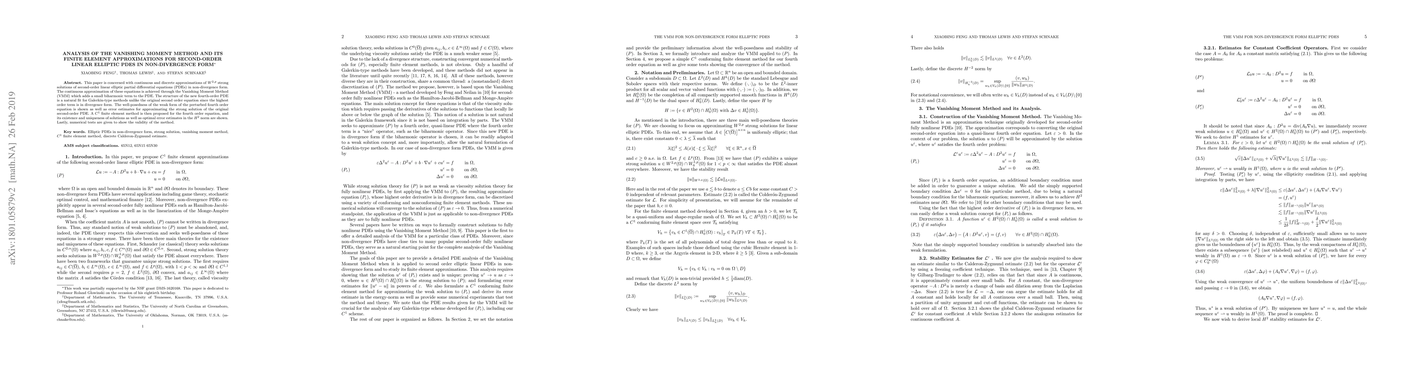 This paper is concerned with continuous and discrete approximations of $W^{2,p}$ strong solutions of second-order linear elliptic partial differential equations (PDEs) in non-divergence form. The continuous approximation of these equations is achieved through the Vanishing Moment Method (VMM) which adds a small biharmonic term to the PDE. The structure of the new fourth-order PDE is a natural fit for Galerkin-type methods unlike the original second order equation since the highest order term is in divergence form. The well-posedness of the weak form of the perturbed fourth order equation is shown as well as error estimates for approximating the strong solution of the original second-order PDE. A $C^1$ finite element method is then proposed for the fourth order equation, and its existence and uniqueness of solutions as well as optimal error estimates in the $H^2$ norm are shown. Lastly, numerical tests are given to show the validity of the method.