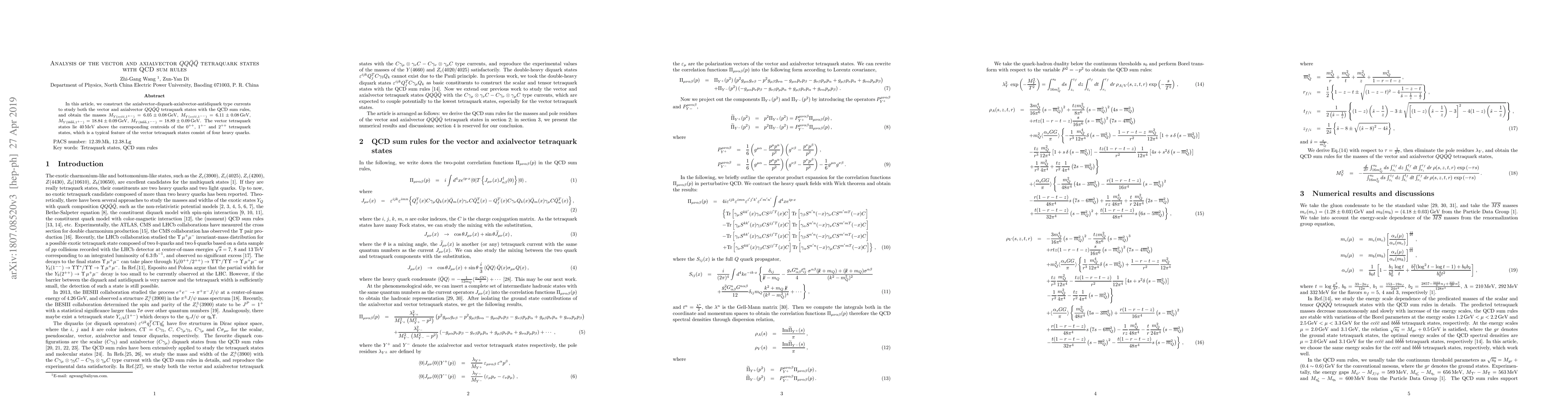 Researchers used QCD sum rules to calculate the masses of $QQar{Q}ar{Q}$ tetraquark states, finding that the axialvector states are 40 MeV above nearby tetraquark centroids, a characteristic feature of vector tetraquarks.