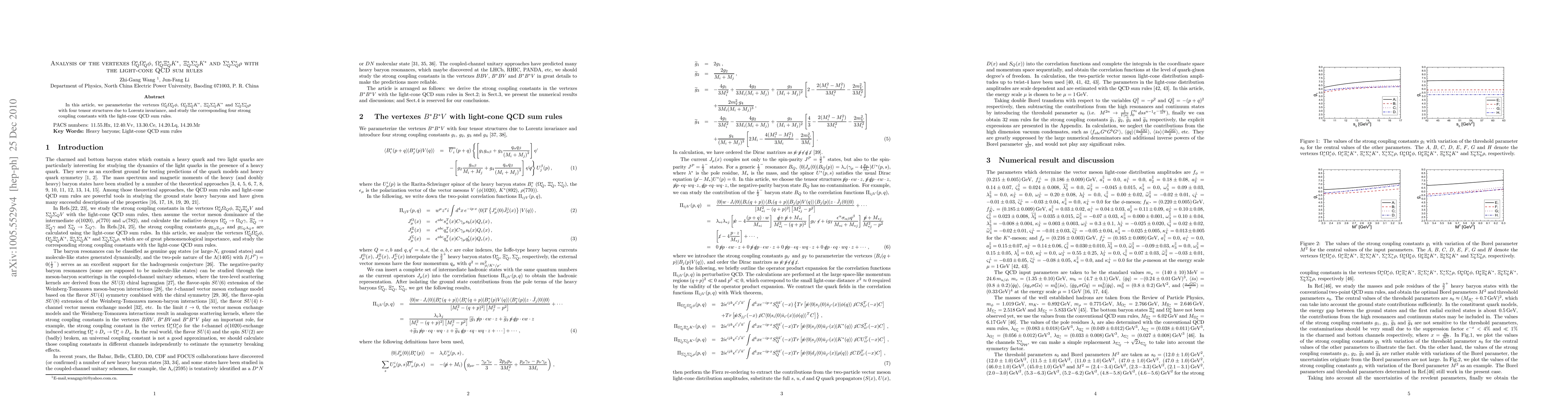 This paper analyzes four specific quark-gluon vertexes using light-cone QCD sum rules, parameterizing them into four tensor structures and determining the corresponding strong coupling constants. The study focuses on the vertexes $\Omega^*_Q\Omega_Q^*\phi$, $\Omega^*_Q\Xi_Q^*K^*$, $\Xi_Q^*\Sigma^*_QK^*$, and $\Sigma_Q^*\Sigma^*_Q \rho$.