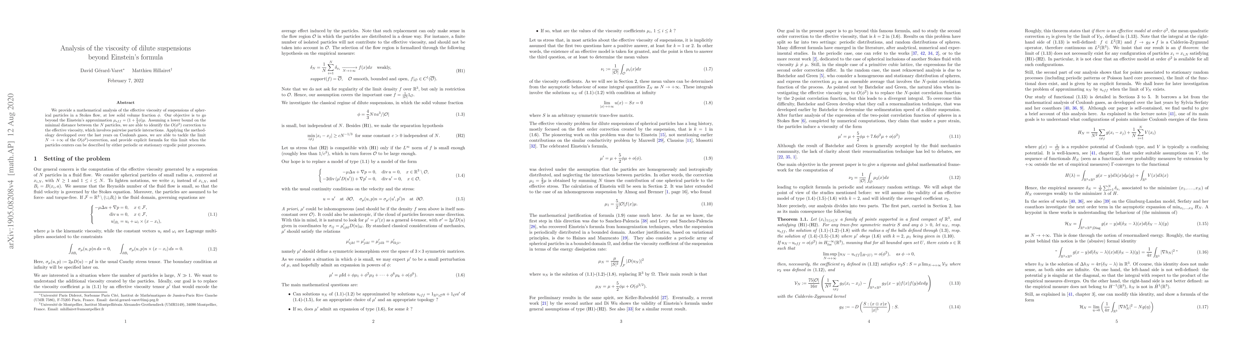 Researchers analyzed the viscosity of dilute suspensions beyond Einstein's formula, finding an $O( ho^2)$ correction involving pairwise particle interactions, which can be described using periodic or stationary ergodic point processes.