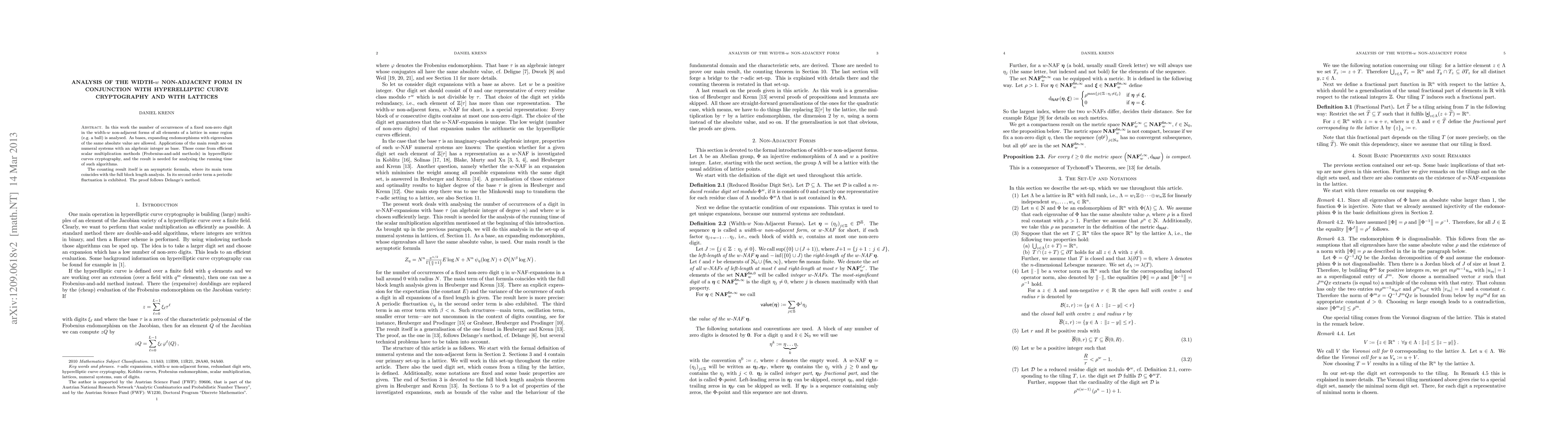 We analyse the number of occurrences of a fixed non-zero digit in the width-w non-adjacent forms of all elements of a lattice in some region (e.g. a ball). Our result is an asymptotic formula, where its main term coincides with the full block length analysis. In its second order term a periodic fluctuation is exhibited. The proof follows Delange's method. This result in a general lattice set-up is then used for numeral systems with an algebraic integer as base. Those come from efficient scalar multiplication methods (Frobenius-and-add methods) in hyperelliptic curves cryptography, and our result is needed for analysing the running time of such algorithms.
