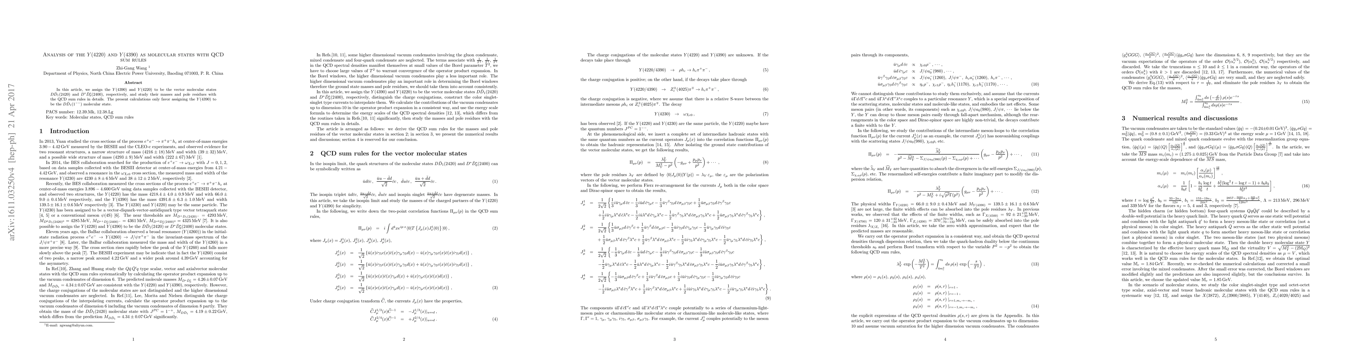 The paper presents detailed QCD sum rule calculations for vector molecular states, incorporating operator product expansion up to dimension-10 and vacuum condensates, along with the energy scale formula.