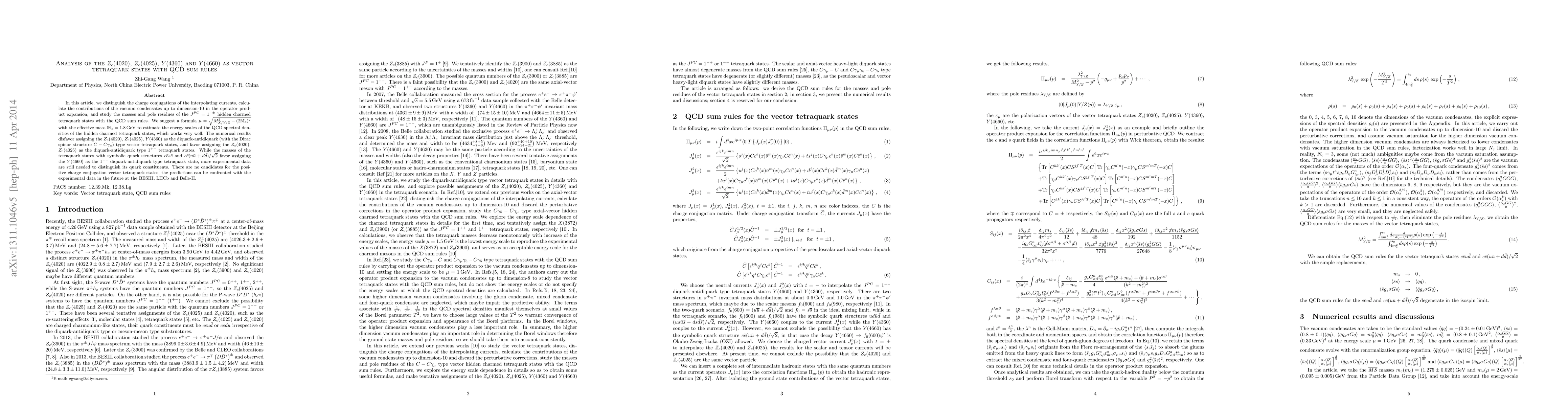 This study uses QCD sum rules to analyze the masses and properties of tetraquark states Z_c(4020), Z_c(4025), Y(4360), and Y(4660). It suggests that Z_c(4020) and Z_c(4025) are likely 1-+ diquark-antidiquark tetraquarks, while Y(4660) may be a 1-- diquark-antidiquark tetraquark. The research disfavors diquark-antidiquark interpretations for Y(4360) and points out the lack of positive charge conjugation vector tetraquark candidates, proposing future experiments at BESIII, LHCb, and Belle-II for verification.