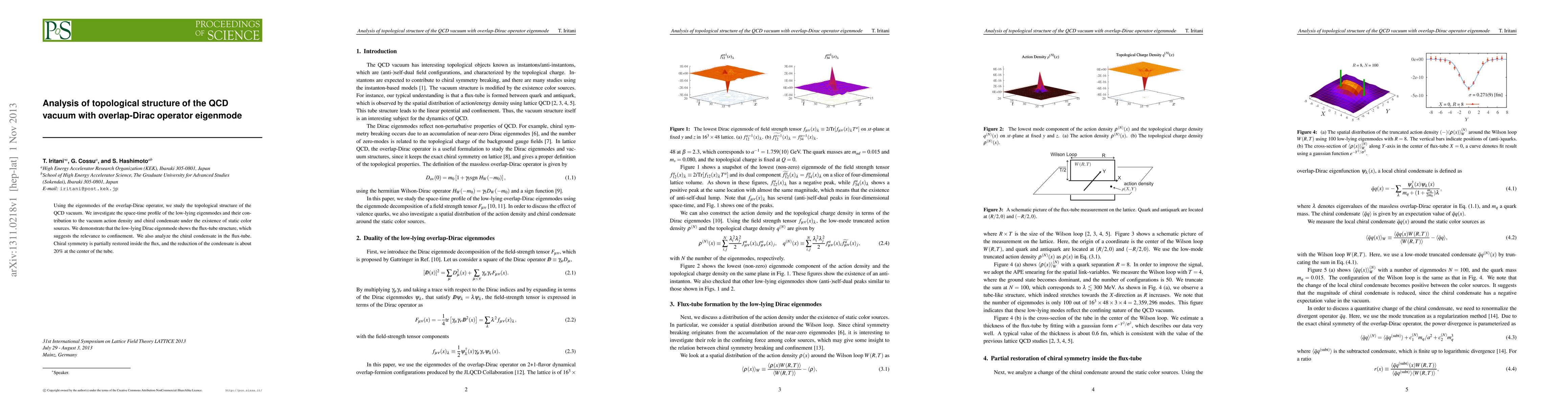 This paper analyzes the topological structure of the QCD vacuum using eigenmodes of the overlap-Dirac operator, revealing a flux-tube structure relevant to confinement and showing a 20% reduction in chiral condensate at the tube's center, indicating partial chiral symmetry restoration.