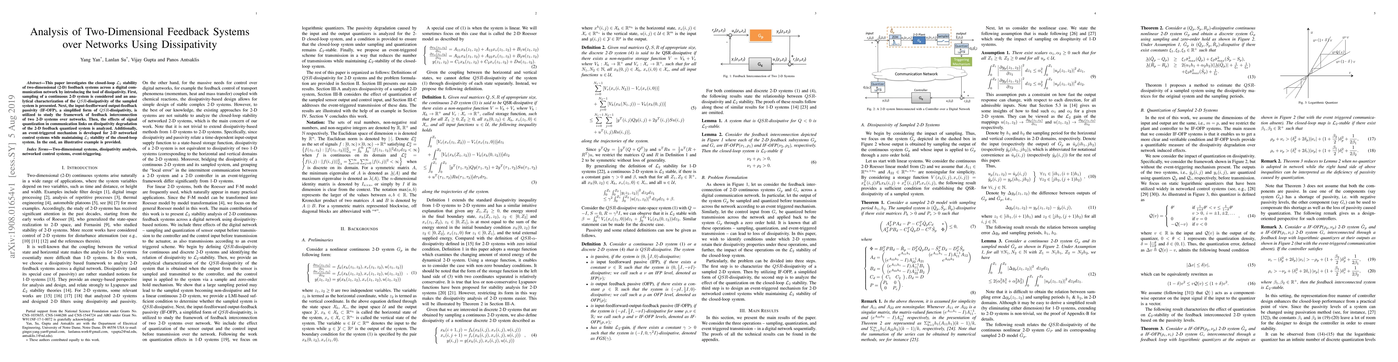 This paper explores $\mathcal{L}_2$ stability of 2-D feedback systems across networks using dissipativity, analyzing $QSR$-dissipativity in sampled systems and applying IF-OFP for networked interconnections, while also addressing quantization effects and developing an event-triggered mechanism for stability.
