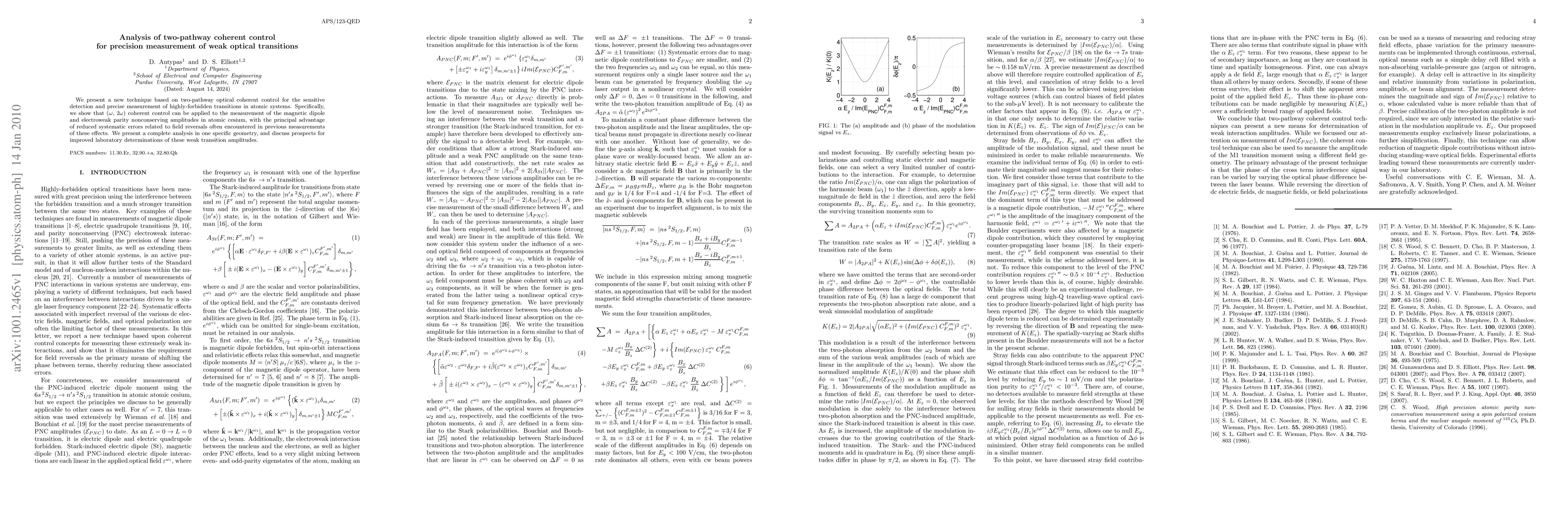 We present a new technique based on two-pathway optical coherent control for the sensitive detection and precise measurement of highly-forbidden transitions in atomic systems. Specifically, we show that ($\omega$, 2$\omega$) coherent control can be applied to the measurement of the magnetic dipole and electroweak parity nonconserving amplitudes in atomic cesium, with the principal advantage of reduced systematic errors related to field reversals often encountered in previous measurements of these effects. We present a complete analysis in one specific geometry, and discuss prospects for improved laboratory determinations of these weak transition amplitudes.