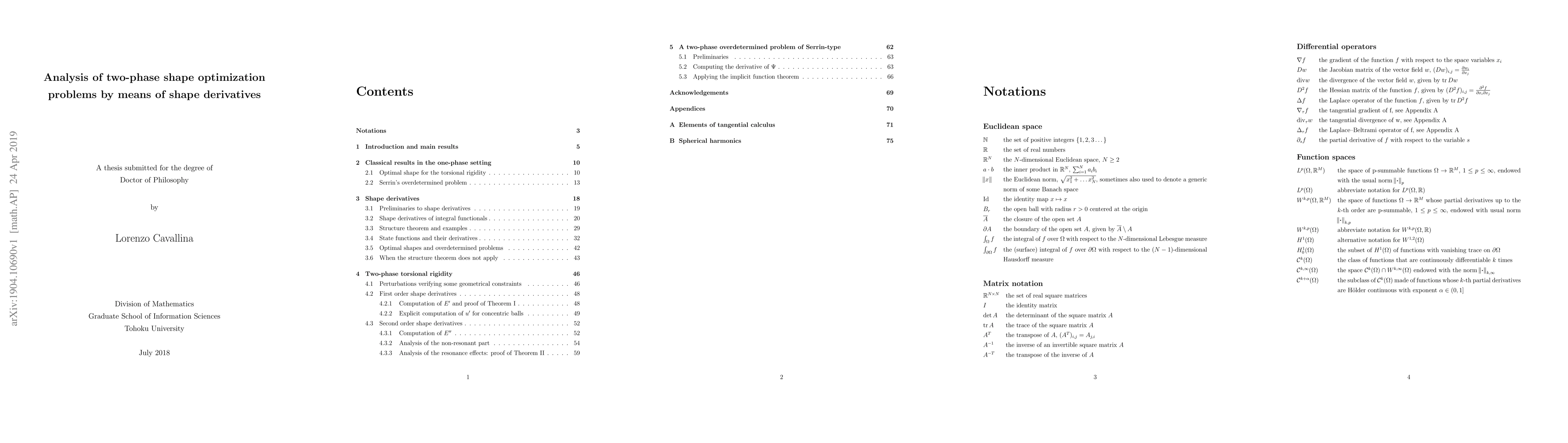 This is my Ph.D. Thesis at Tohoku Univeristy (July 2018). It presents the theory on shape derivatives and focuses on its applications to two-phase optimization problems. In particular, we treat the two-phase torsion problem and a two-phase analogous of Serrin's overdetermined problem.