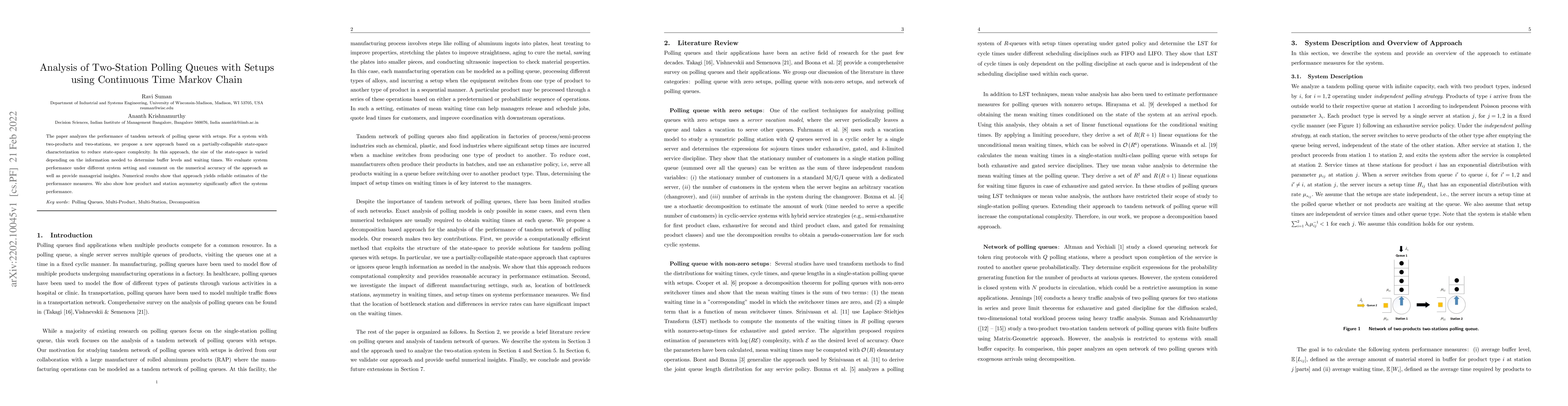 The paper proposes a new method for analyzing tandem polling queues with setups using a continuous time Markov chain, employing a partially-collapsible state-space to reduce complexity. Numerical results demonstrate the method's accuracy and reveal significant impacts of product and station asymmetry on system performance.
