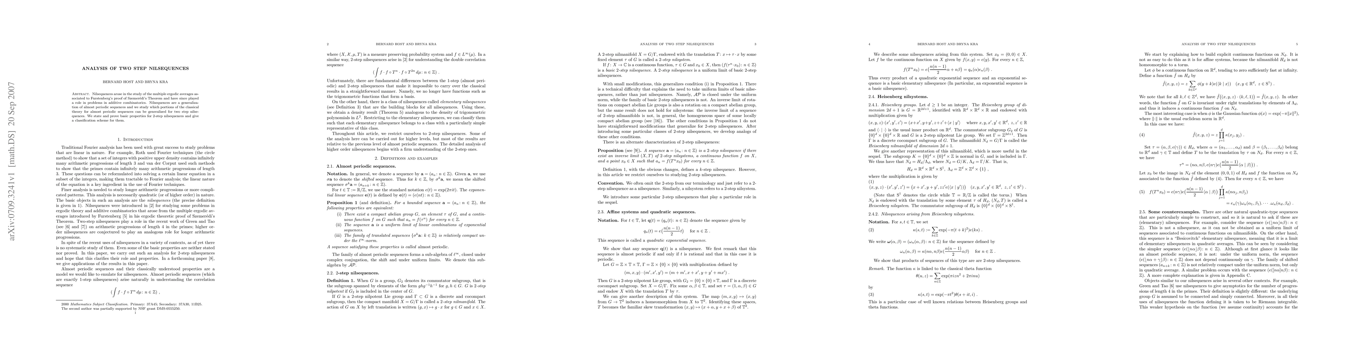 This paper explores the properties and classification of two step nilsequences, extending classical theory from almost periodic sequences to this more general framework, and establishes foundational results for their analysis in additive combinatorics.