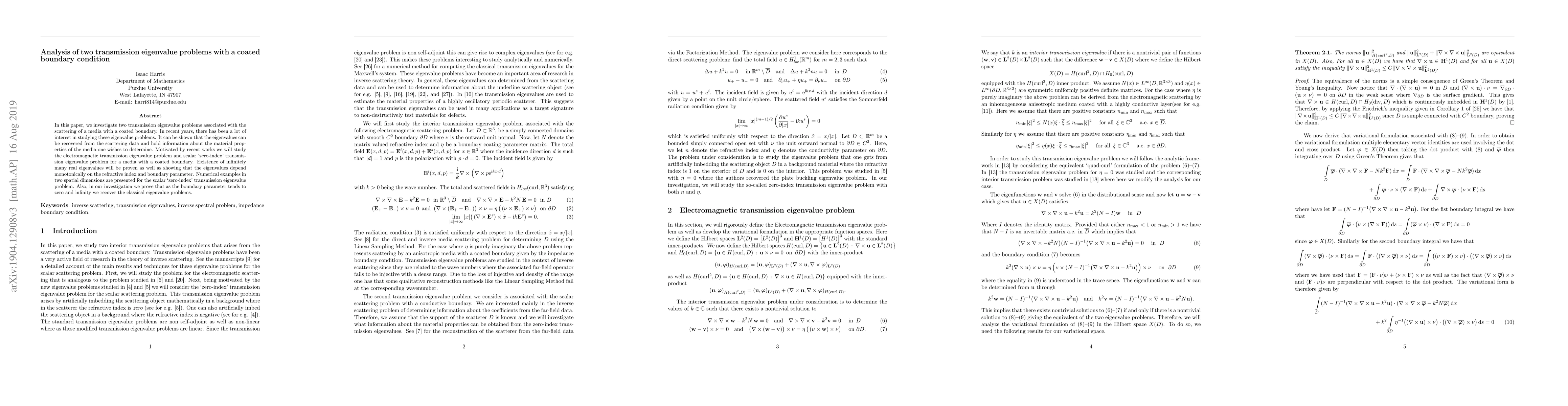 This paper investigates two transmission eigenvalue problems for media with coated boundaries, proving the existence of infinitely many real eigenvalues and their monotonic dependence on refractive index and boundary parameters. Numerical examples for the scalar zero-index problem are provided, and the study shows the recovery of classical eigenvalue problems as the boundary parameter varies.