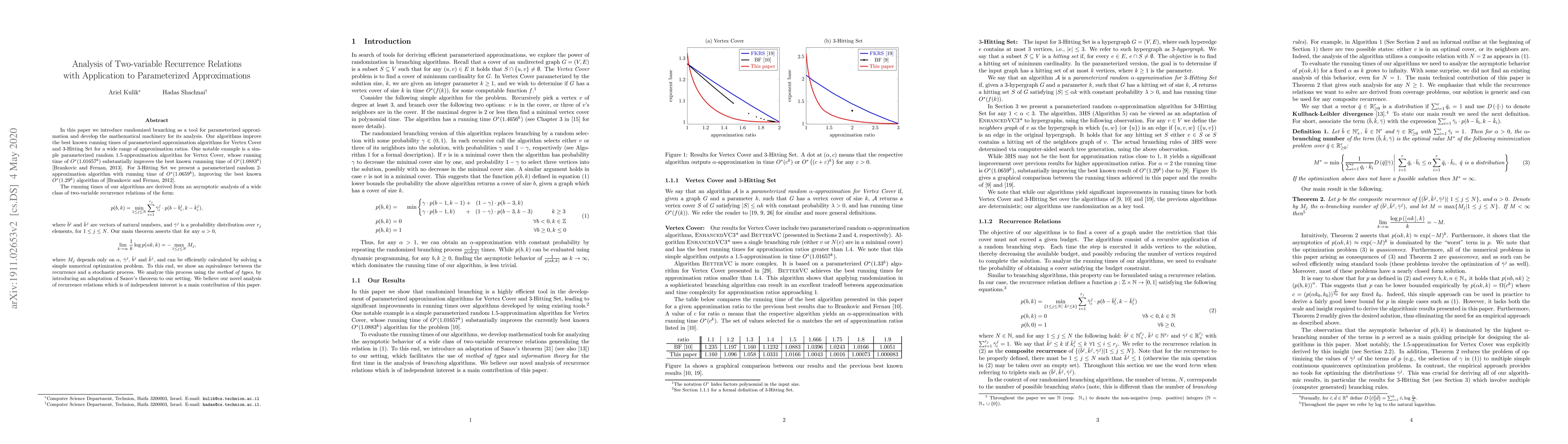 This paper introduces randomized branching for parameterized approximation, improving running times for Vertex Cover and $3$-Hitting Set algorithms. It analyzes a class of two-variable recurrence relations to derive optimal running times, establishing a connection between recurrence relations and stochastic processes using the Method of Types.