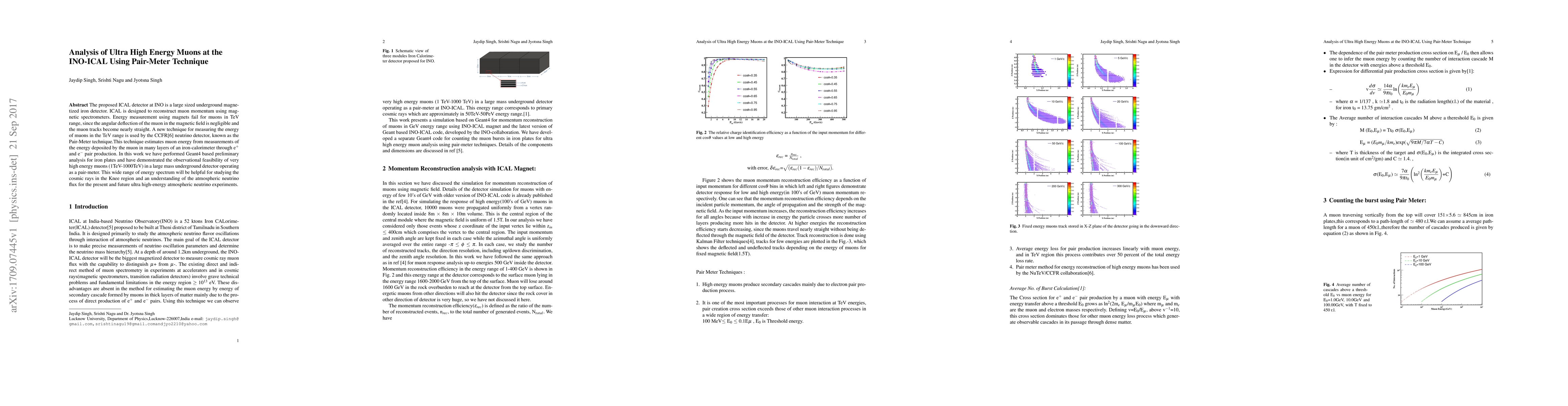 The proposed ICAL detector at INO is a large sized underground magnetized iron detector. ICAL is designed to reconstruct muon momentum using magnetic spectrometers. Energy measurement using magnets fail for muons in TeV range, since the angular deflection of the muon in the magnetic field is negligible and the muon tracks become nearly straight. A new technique for measuring the energy of muons in the TeV range is used by the CCFR neutrino detector, known as the Pair-Meter technique. This technique estimates muon energy from measurements of the energy deposited by the muon in many layers of an iron-calorimeter through e$^+$ and e$^-$ pair production. In this work we have performed Geant4 based preliminary analysis for iron plates and have demonstrated the observational feasibility of very high energy muons (1TeV-1000TeV) in a large mass underground detector operating as a pair-meter. This wide range of energy spectrum will be helpful for studying the cosmic rays in the Knee region and an understanding of the atmospheric neutrino flux for the present and future ultra high-energy atmospheric neutrino experiments.