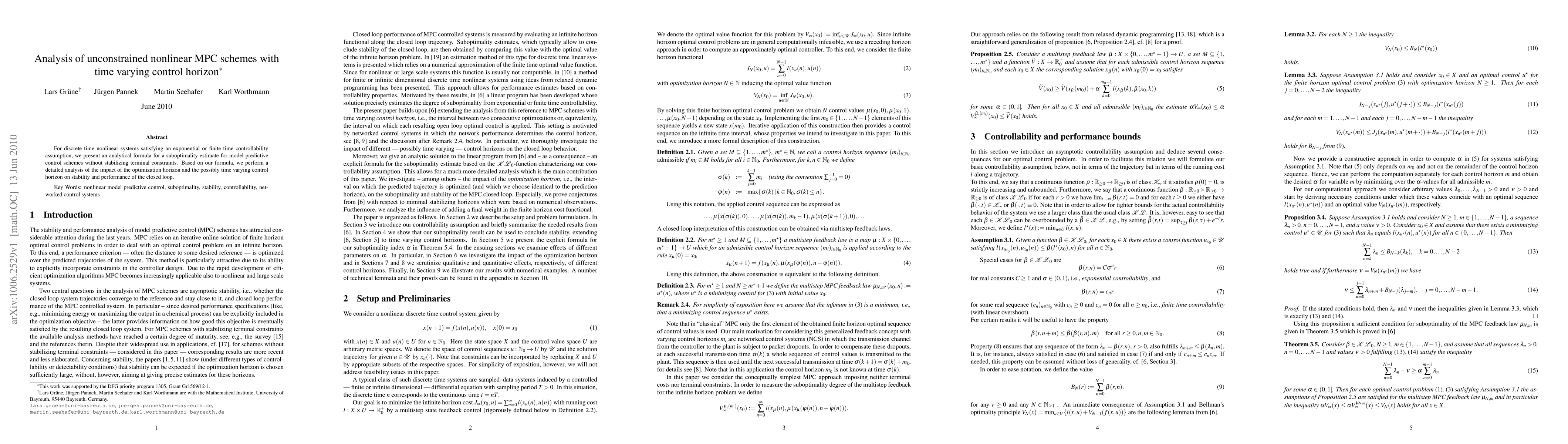 This paper provides an analytical formula for estimating suboptimality in unconstrained nonlinear model predictive control (MPC) schemes for discrete time systems. It analyzes how varying optimization horizons affect stability and performance, without relying on stabilizing terminal constraints.