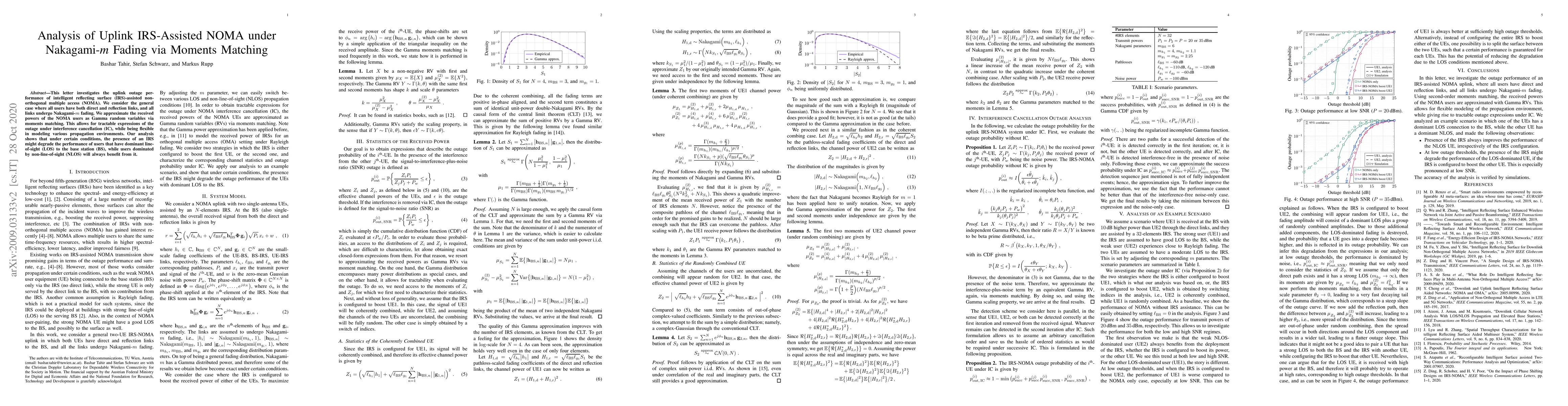 This paper analyzes the uplink outage performance of IRS-assisted NOMA under Nakagami-m fading, approximating received powers via moments matching. It finds that IRS can degrade performance for users with dominant LOS but benefits those with NLOS.