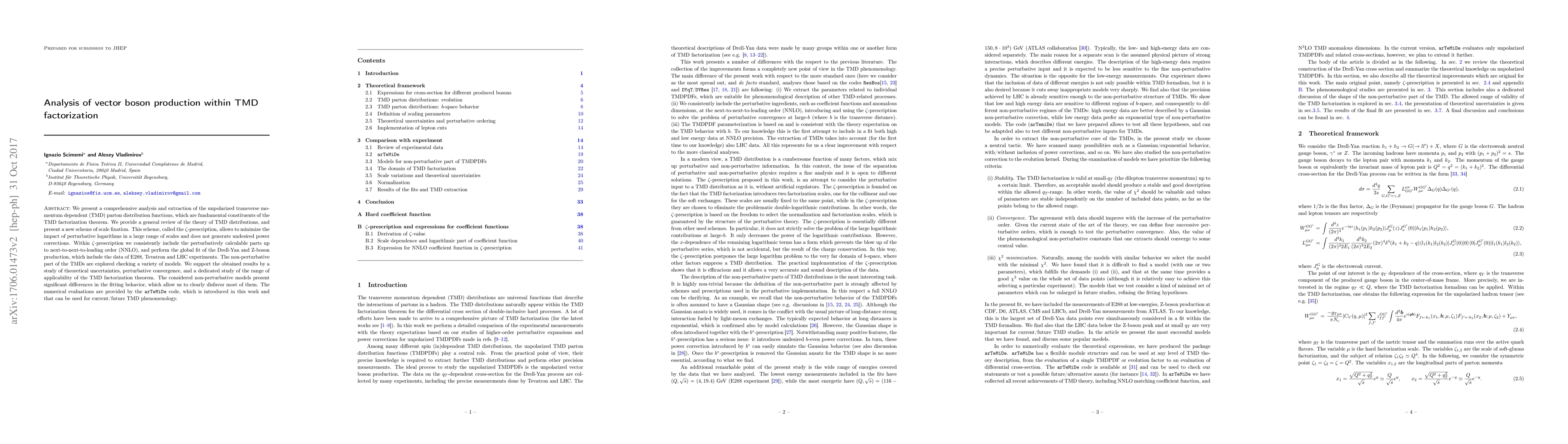 This paper analyzes unpolarized transverse momentum dependent (TMD) parton distribution functions within TMD factorization, introducing a new $\zeta$-prescription scheme to minimize perturbative logarithms. The study includes NNLO calculations and global fits to Drell-Yan and Z-boson production data, supported by theoretical uncertainty and convergence studies.