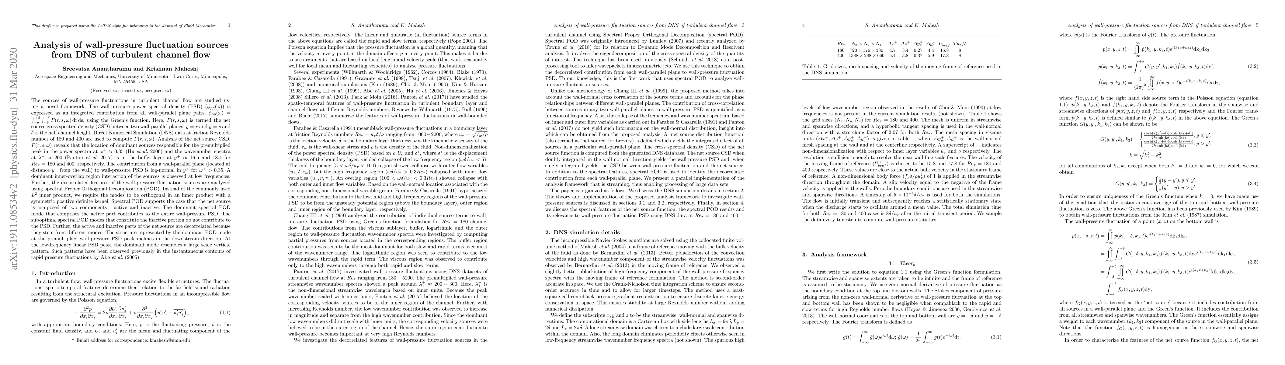 This paper analyzes the sources of wall-pressure fluctuations in turbulent channel flow using DNS data, revealing that dominant sources are located in the buffer layer. The study employs spectral Proper Orthogonal Decomposition to show that the net source comprises two decorrelated components, with the dominant mode inclined downstream at the PSD peak.