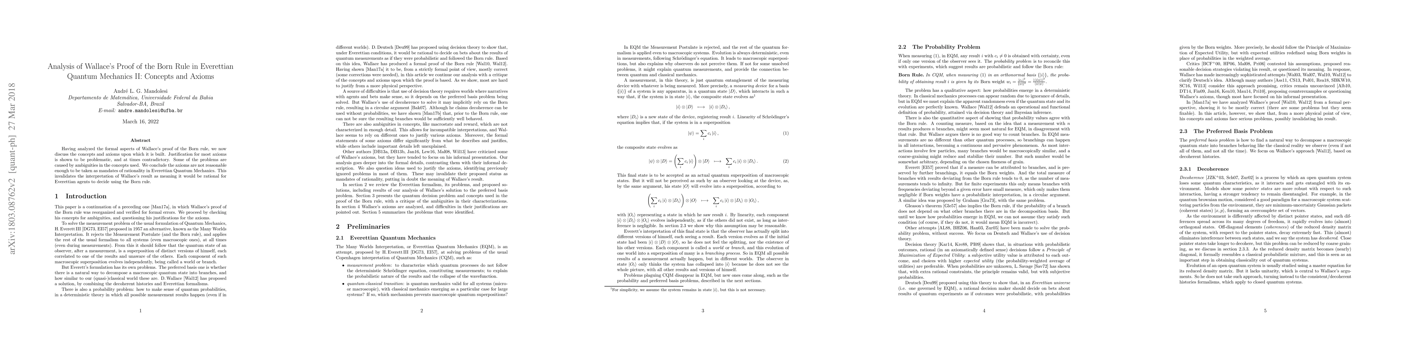 Summary: The paper critically examines the concepts and axioms underlying Wallace's proof of the Born rule in Everettian Quantum Mechanics, finding many axioms to be problematic and contradictory, thus invalidating the claim that Everettian agents should use the Born rule rationally.