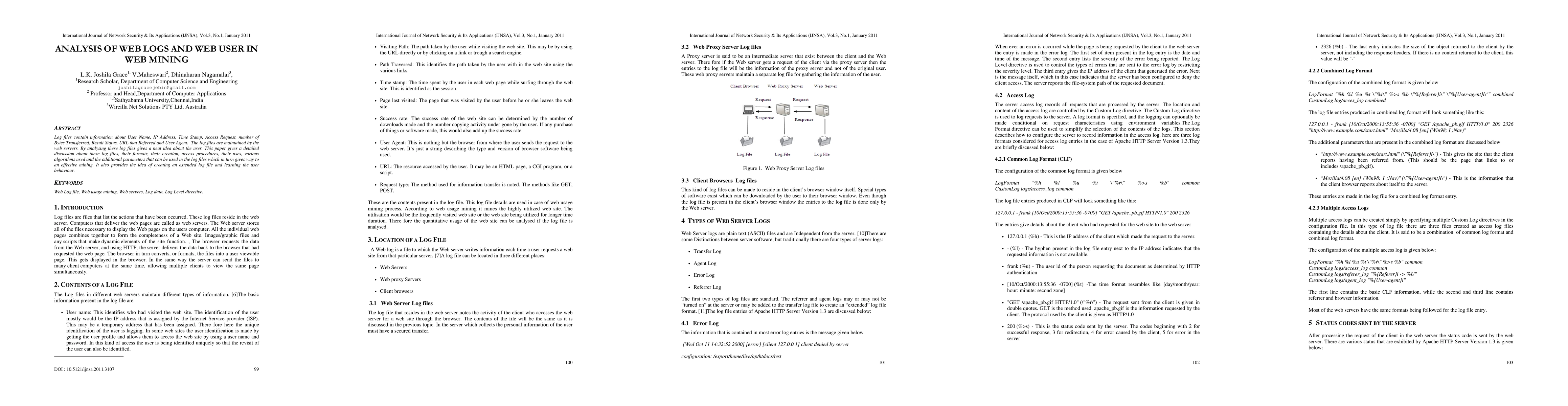 Log files contain information about User Name, IP Address, Time Stamp, Access Request, number of Bytes Transferred, Result Status, URL that Referred and User Agent. The log files are maintained by the web servers. By analysing these log files gives a neat idea about the user. This paper gives a detailed discussion about these log files, their formats, their creation, access procedures, their uses, various algorithms used and the additional parameters that can be used in the log files which in turn gives way to an effective mining. It also provides the idea of creating an extended log file and learning the user behaviour.