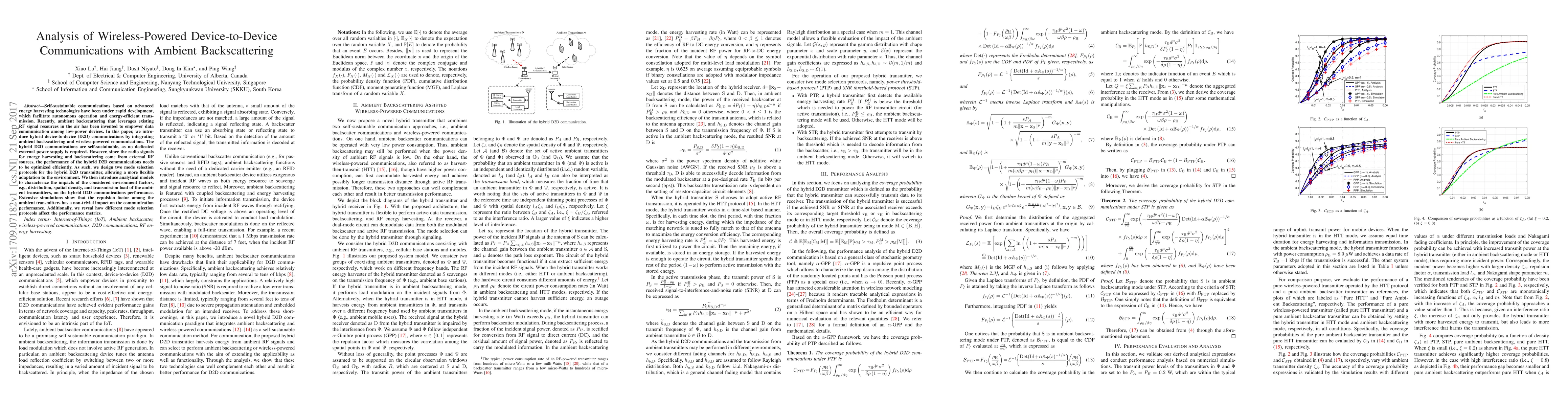 This paper explores hybrid wireless-powered device-to-device (D2D) communications integrating ambient backscattering for self-sustainable, energy-efficient data exchange. It proposes two mode selection protocols to optimize performance and presents analytical models to assess the impact of environmental factors on the system.