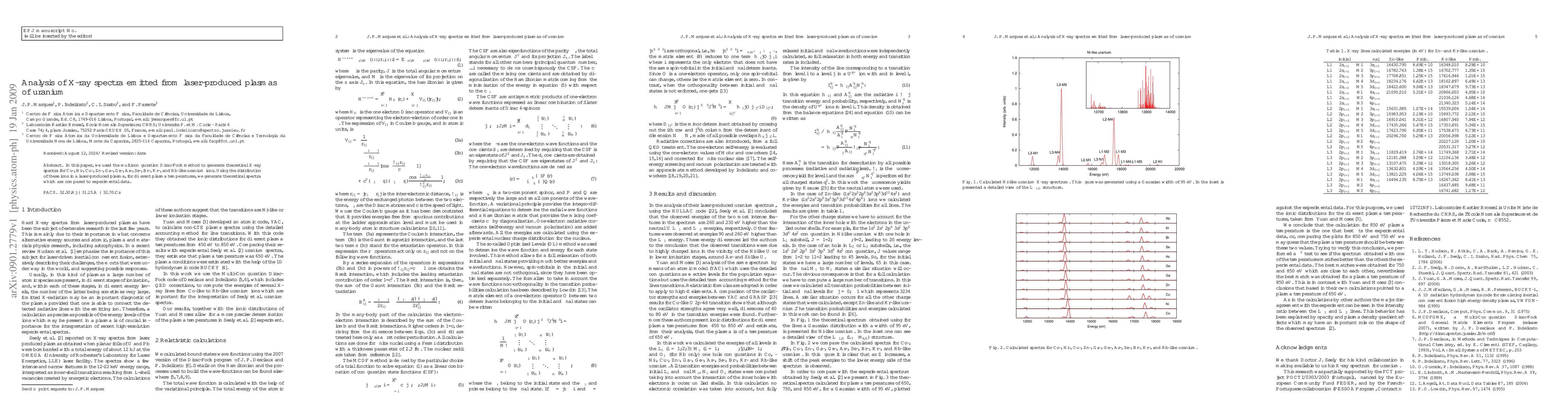This paper employs the multiconfiguration Dirac-Fock method to theoretically generate X-ray spectra for various uranium ions in laser-produced plasmas. The study compares these theoretical spectra with experimental data to assess the distribution of uranium ions at different plasma temperatures.