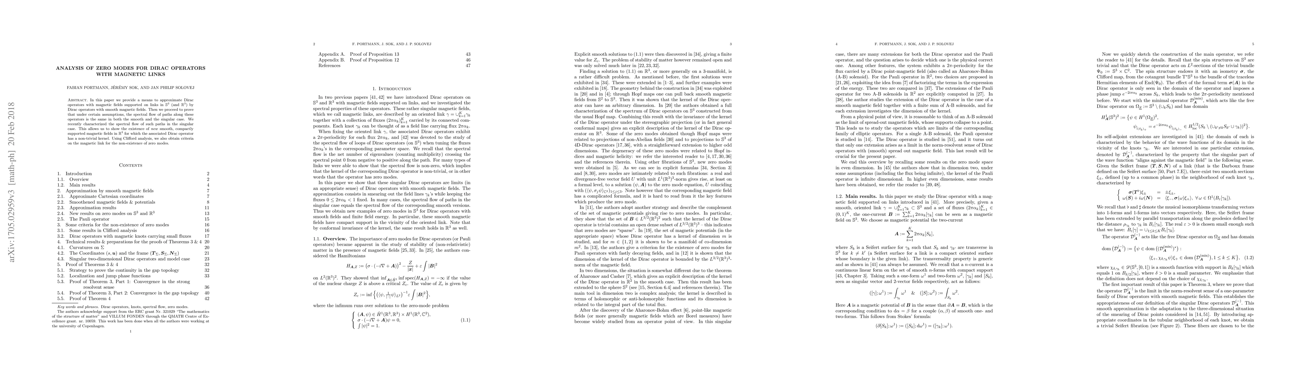 This paper approximates Dirac operators with magnetic fields on links in $\mathbb{S}^3$ and $\mathbb{R}^3$ by smooth magnetic fields, proving equal spectral flow in both cases. It also reveals the existence of new smooth magnetic fields in $\mathbb{R}^3$ with non-trivial Dirac operator kernels, and provides criteria for zero mode non-existence using Clifford analysis.