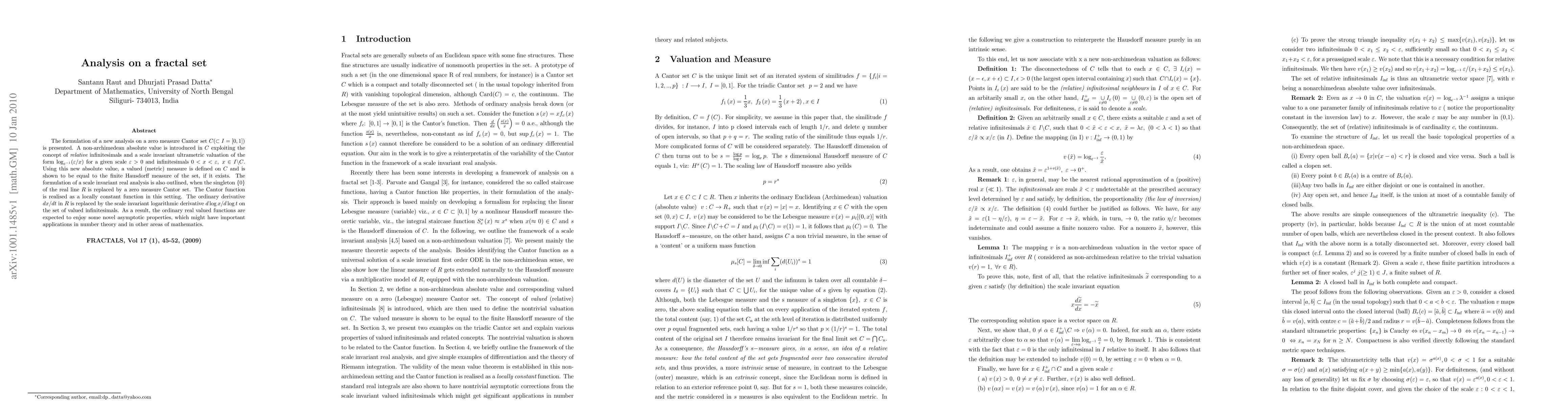 The formulation of a new analysis on a zero measure Cantor set $C (\subset