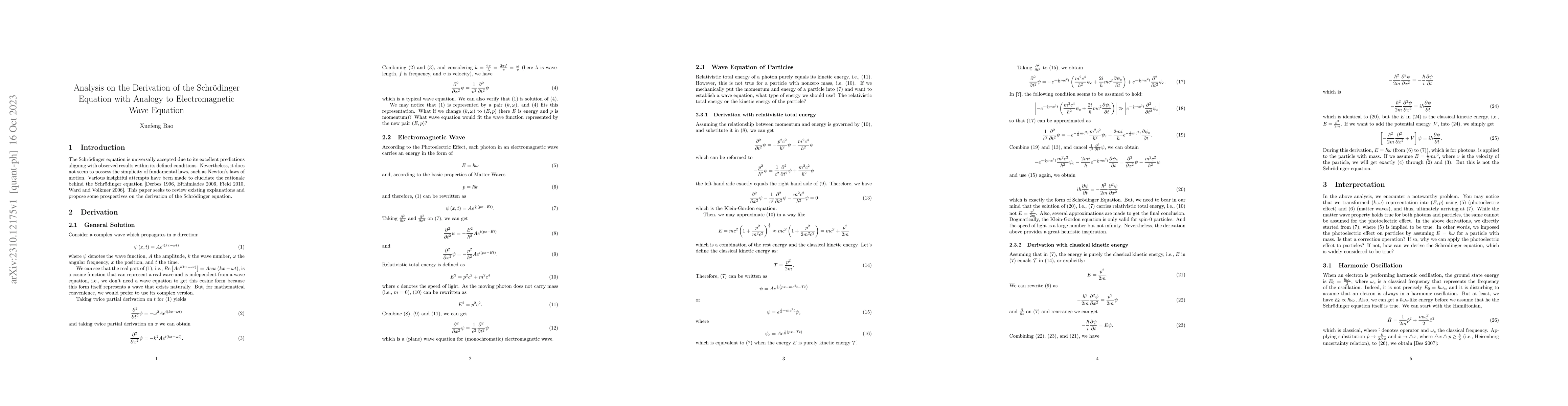 This paper reviews existing derivations of the Schrödinger equation and proposes new insights by drawing analogies to the electromagnetic wave equation, aiming to simplify and elucidate its fundamental rationale.