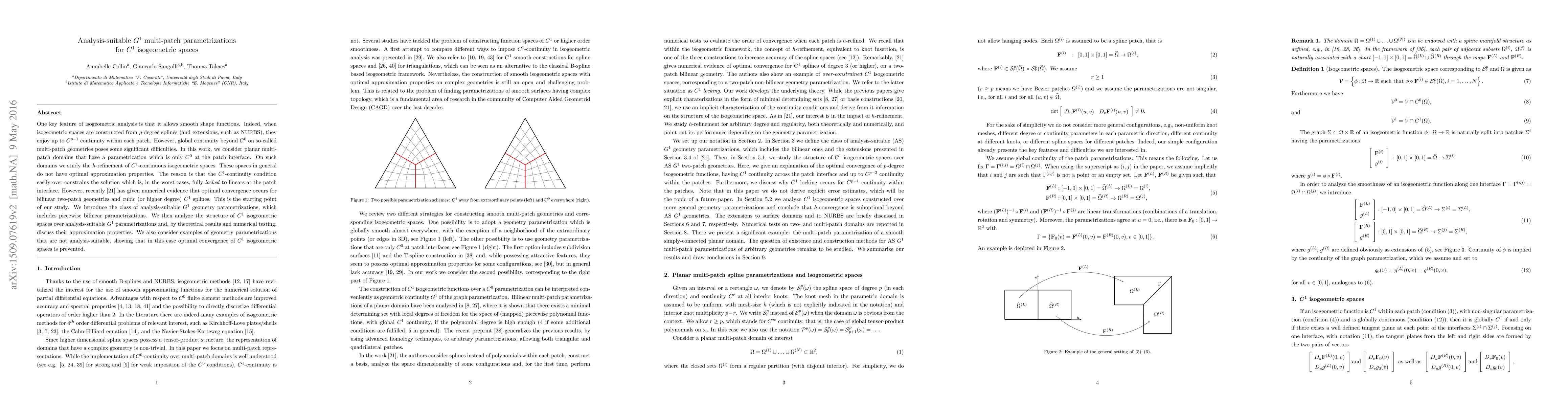 One key feature of isogeometric analysis is that it allows smooth shape functions. Indeed, when isogeometric spaces are constructed from $p$-degree splines (and extensions, such as NURBS), they enjoy up to $C^{p-1}$ continuity within each patch. However, global continuity beyond $C^0$ on so-called multi-patch geometries poses some significant difficulties. In this work, we consider planar multi-patch domains that have a parametrization which is only $C^0$ at the patch interface. On such domains we study the $h$-refinement of $C^1$-continuous isogeometric spaces. These spaces in general do not have optimal approximation properties. The reason is that the $C^1$-continuity condition easily over-constrains the solution which is, in the worst cases, fully locked to linears at the patch interface. However, recent studies by Kapl et al. have given numerical evidence that optimal convergence occurs for bilinear two-patch geometries and cubic (or higher degree) $C^1$ splines. This is the starting point of our study. We introduce the class of analysis-suitable $G^1$ geometry parametrizations, which includes piecewise bilinear parametrizations. We then analyze the structure of $C^1$ isogeometric spaces over analysis-suitable $G^1$ parametrizations and, by theoretical results and numerical testing, discuss their approximation properties. We also consider examples of geometry parametrizations that are not analysis-suitable, showing that in this case optimal convergence of $C^1$ isogeometric spaces is prevented.