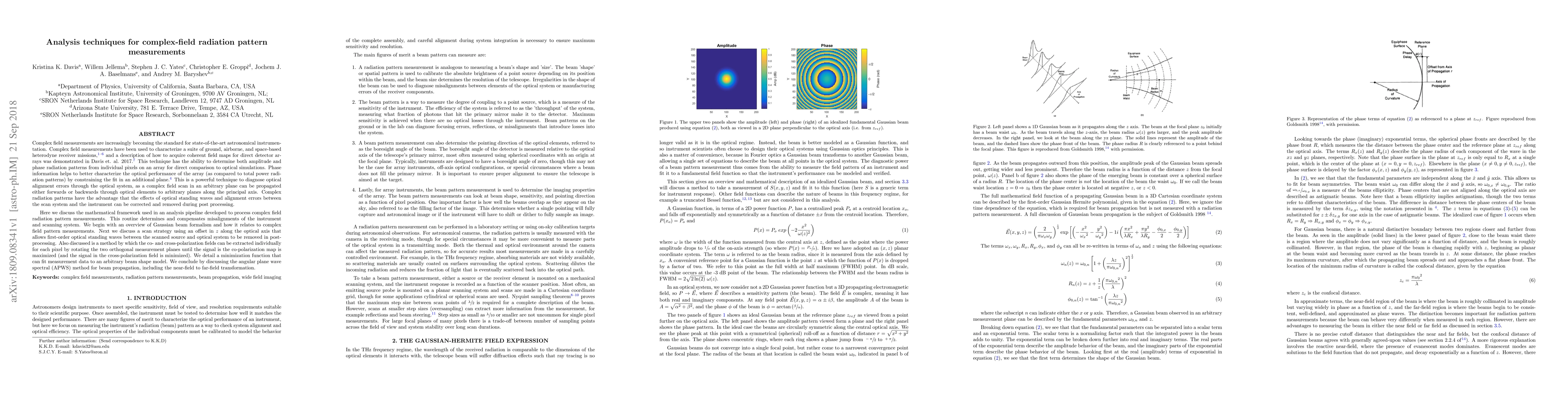 A research paper discusses techniques for analyzing radiation pattern measurements from complex-field astronomical instrumentation, enabling accurate characterization of optical performance and beam propagation.