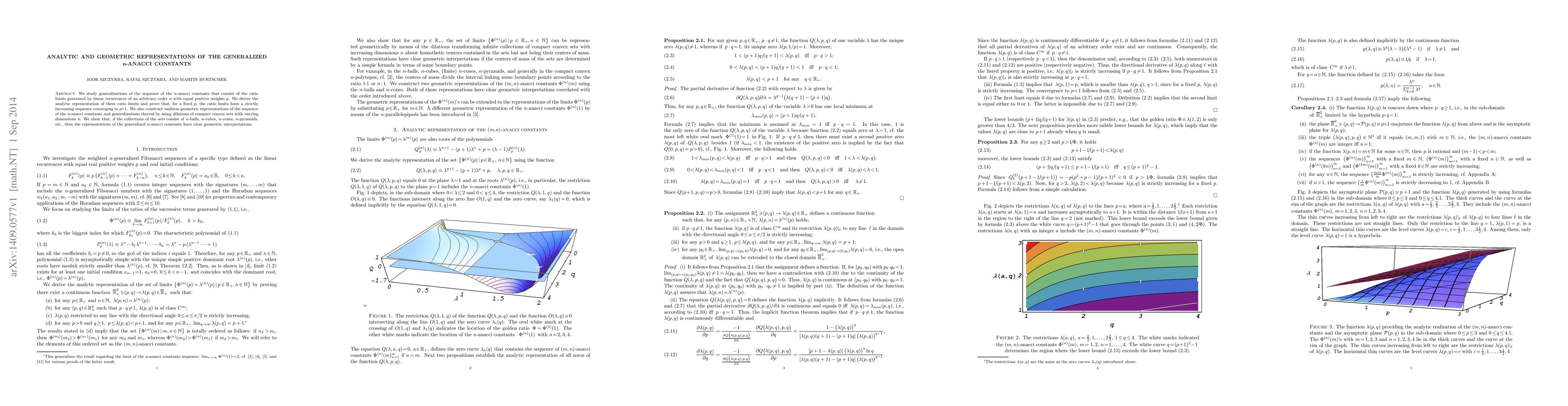 We study generalizations of the sequence of the n-anacci constants that consist of the ratio limits generated by linear recurrences of an arbitrary order n with equal positive weights p. We derive the analytic representation of these ratio limits and prove that, for a fixed p, the ratio limits form a strictly increasing sequence converging to p+1. We also construct uniform geometric representations of the sequence of the n-anacci constants and generalizations thereof by using dilations of compact convex sets with varying dimensions n. We show that, if the collections of the sets consist of n-balls, n-cubes, n-cones, n-pyramids, etc., then the representations of the generalized n-anacci constants have clear geometric interpretations.