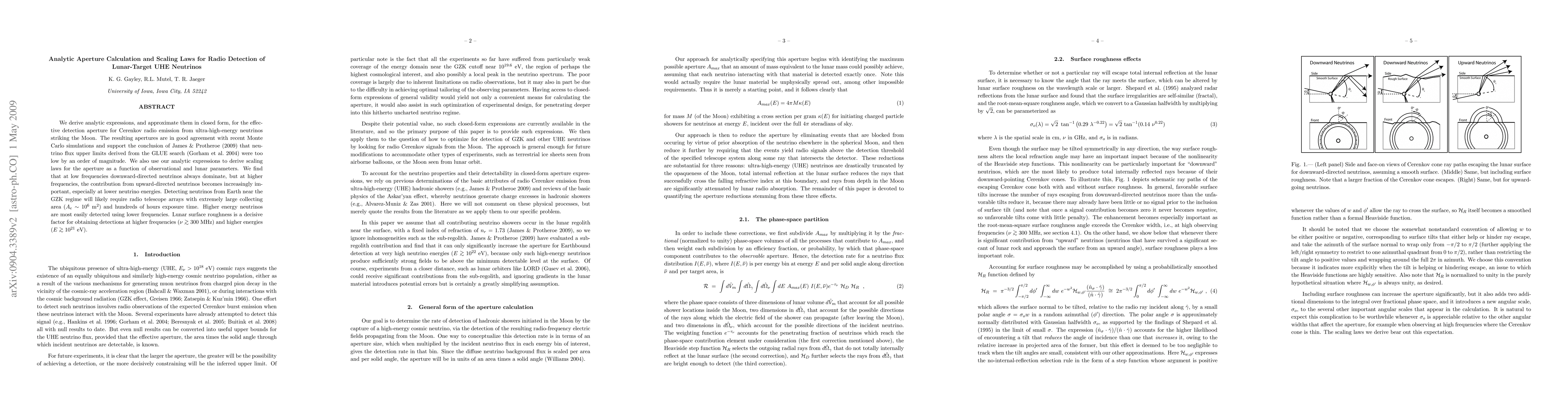 We derive analytic expressions, and approximate them in closed form, for the effective detection aperture for Cerenkov radio emission from ultra-high-energy neutrinos striking the Moon. The resulting apertures are in good agreement with recent Monte Carlo simulations and support the conclusion of James & Protheroe (2009)that neutrino flux upper limits derived from the GLUE search (Gorham et al.2004) were too low by an order of magnitude. We also use our analytic expressions to derive scaling laws for the aperture as a function of observational and lunar parameters. We find that at low frequencies downward-directed neutrinos always dominate, but at higher frequencies, the contribution from upward-directed neutrinos becomes increasingly important, especially at low neutrino energies. Detecting neutrinos from Earth near the GZK regime will likely require radio telescope arrays with extremely large collecting area and hundreds of hour of exposure time. Higher energy neutrinos are most easily detected using lower frequencies. Lunar surface roughness is a decisive factor for obtaining detections at higher frequencies and higher energies.