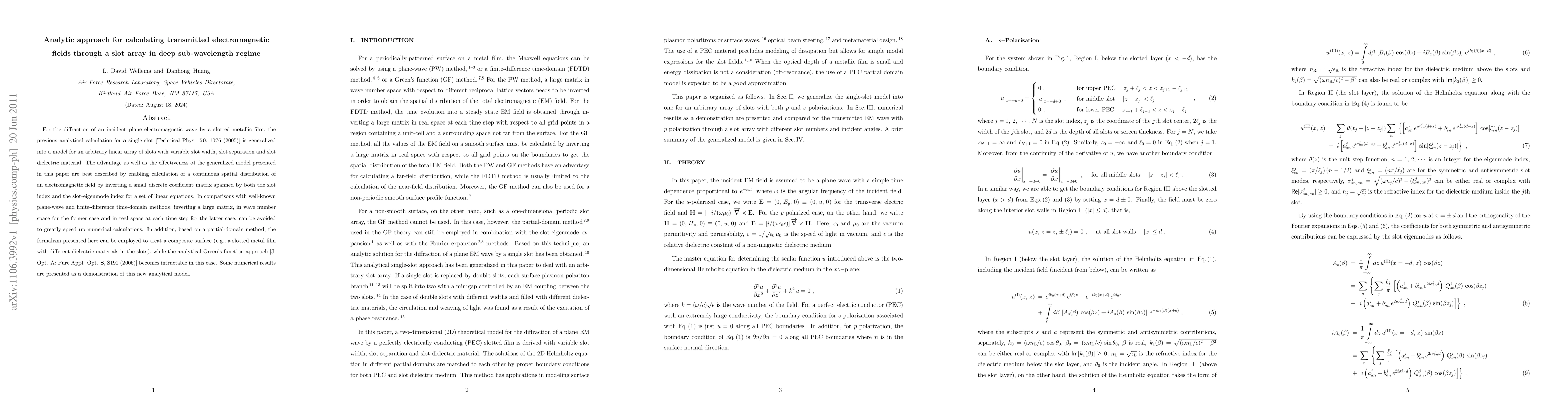 Researchers developed a new analytical model to calculate transmitted electromagnetic fields through a slot array in deep sub-wavelength regime, offering a faster alternative to numerical methods.