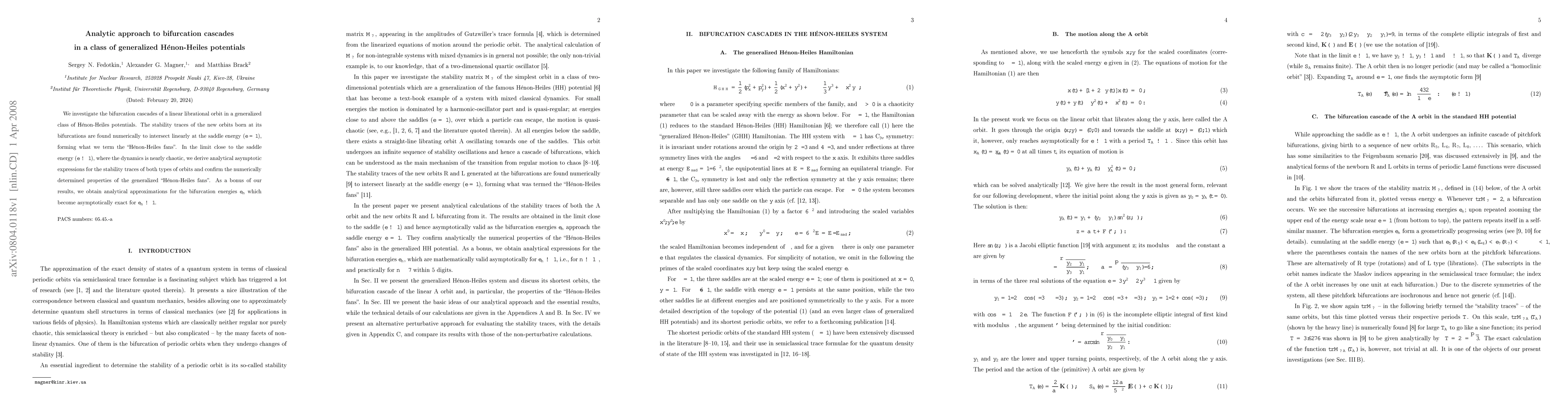 We derive stability traces of bifurcating orbits in H\'enon-Heiles potentials near their saddles