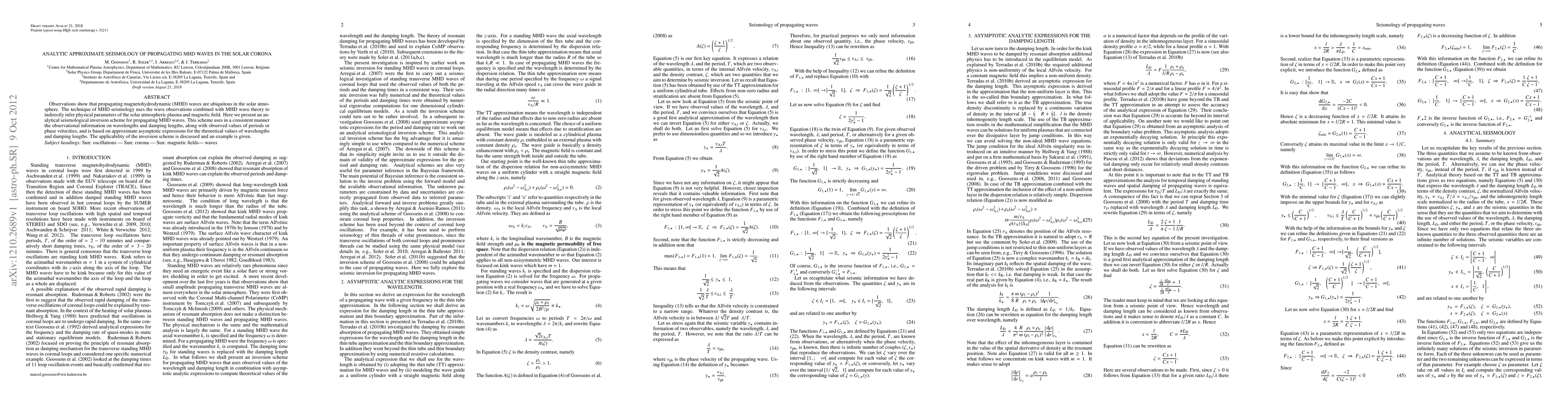 This paper introduces an analytical inversion scheme for MHD seismology to infer solar atmospheric plasma and magnetic field parameters using observations of MHD wave wavelengths, damping lengths, periods, and phase velocities. The method is based on approximate asymptotic expressions and demonstrates its applicability through an example.