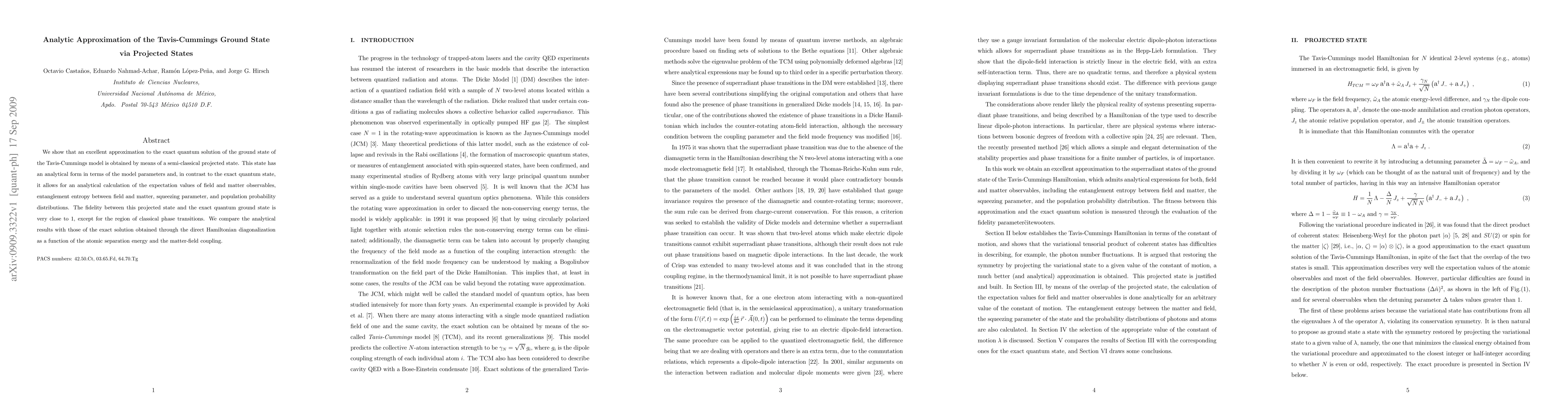 Researchers developed an analytical approximation for the Tavis-Cummings model ground state using projected states, achieving high accuracy except near phase transitions. This method allows for easy calculation of key observables and properties.