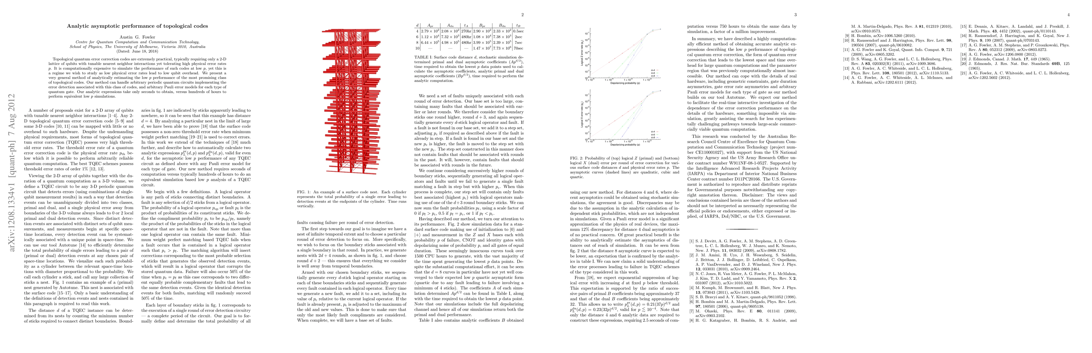 This paper presents an efficient analytic method to estimate the performance of topological quantum error correction codes at low physical error rates, providing results in seconds compared to hundreds of hours for low-error simulations. The approach applies to any periodic quantum circuits and various Pauli error models.