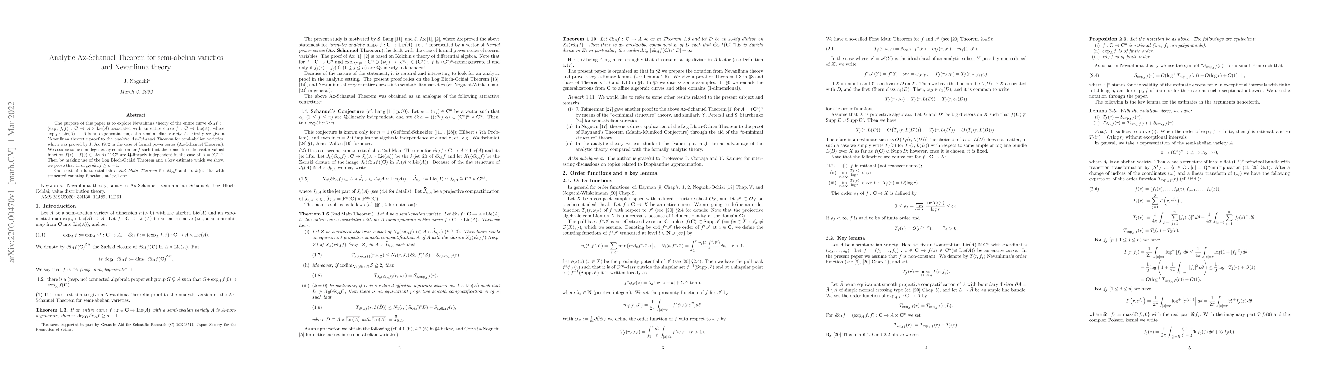 This paper investigates the Nevanlinna theory of entire curves associated with semi-abelian varieties, proving the analytic Ax-Schanuel Theorem under non-degeneracy conditions. It establishes a 2nd Main Theorem for the associated vector-valued function and its truncated counting functions.