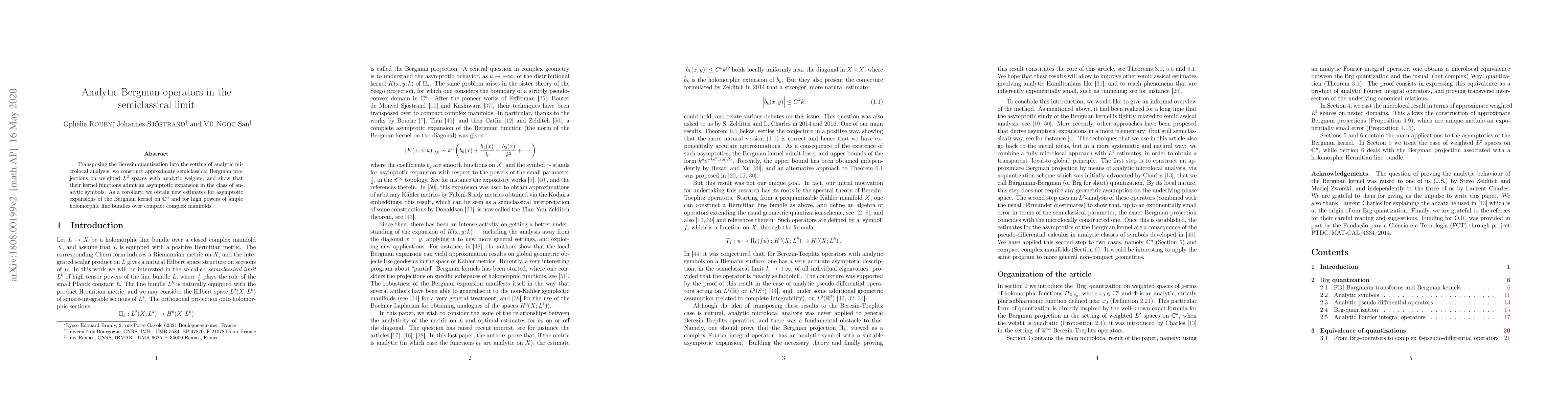 The paper introduces a novel approach to constructing analytic Bergman operators in the semiclassical limit, linking Berezin quantization with analytic microlocal analysis.