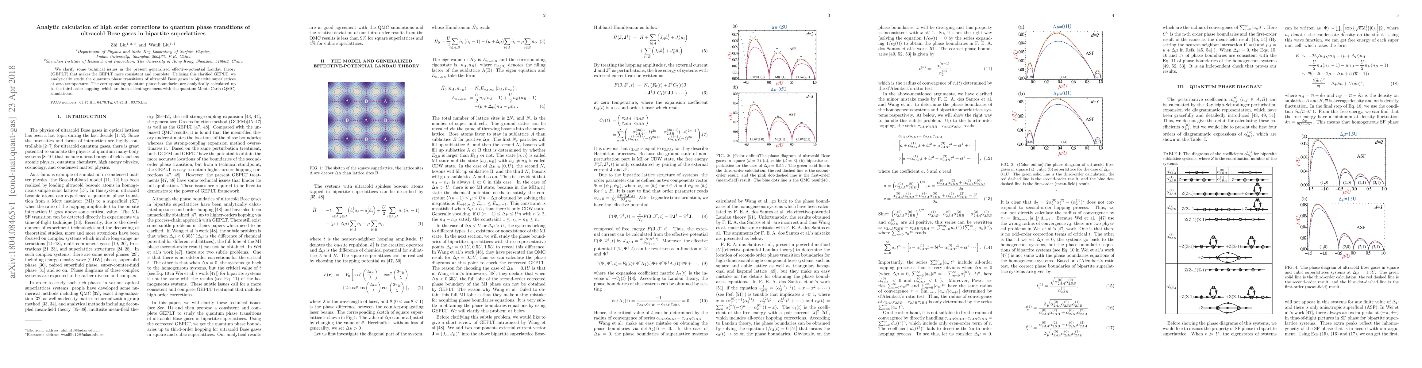 Researchers used a clarified effective-potential Landau theory to study quantum phase transitions in ultracold Bose gases in bipartite superlattices at zero temperature. They found excellent agreement with quantum Monte Carlo simulations up to the third-order hopping.