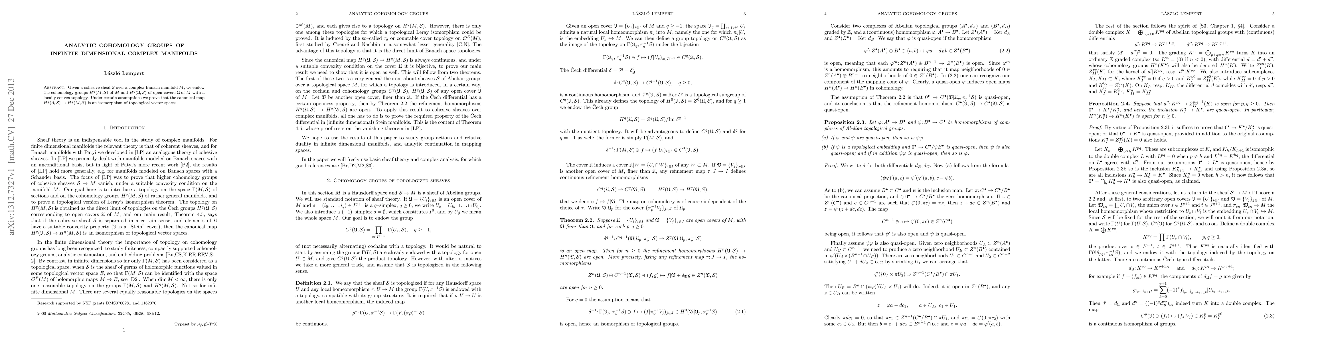 Given a cohesive sheaf $\Cal S$ over a complex Banach manifold $M$, we endow the cohomology groups $H^q(M,\Cal S)$ of $M$ and $H^q(\frak U,\Cal S)$ of open covers $\frak U$ of $M$ with a locally convex topology. Under certain assumptions we prove that the canonical map $H^q(\frak U,\Cal S)\to H^q(M,\Cal S)$ is an isomorphism of topological vector spaces.