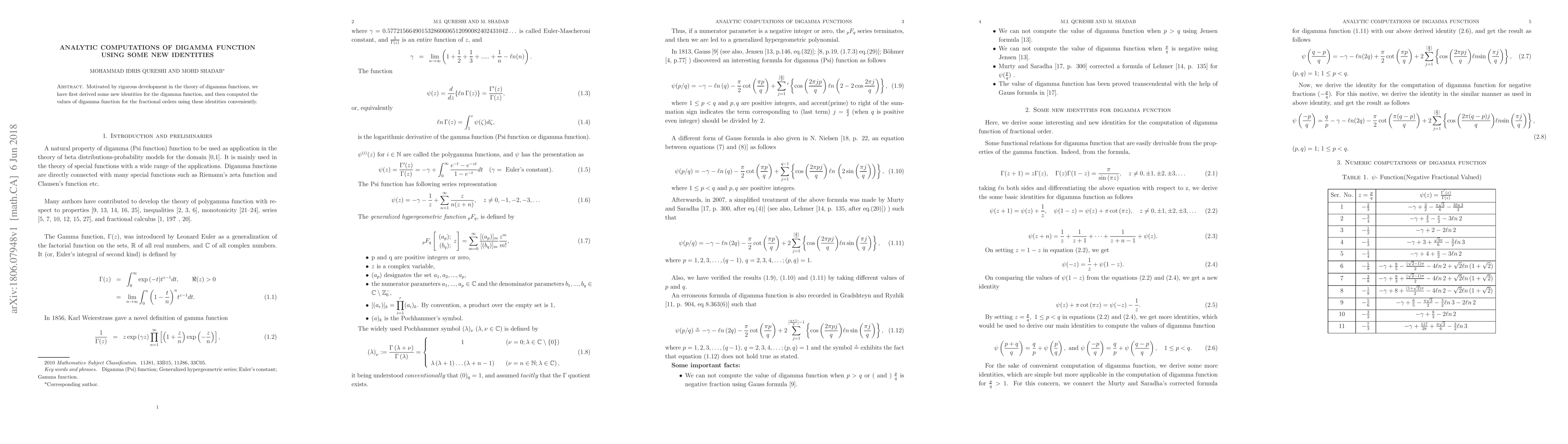Researchers derived new identities for the digamma function and used them to compute its values for fractional orders, expanding the understanding of this mathematical concept.