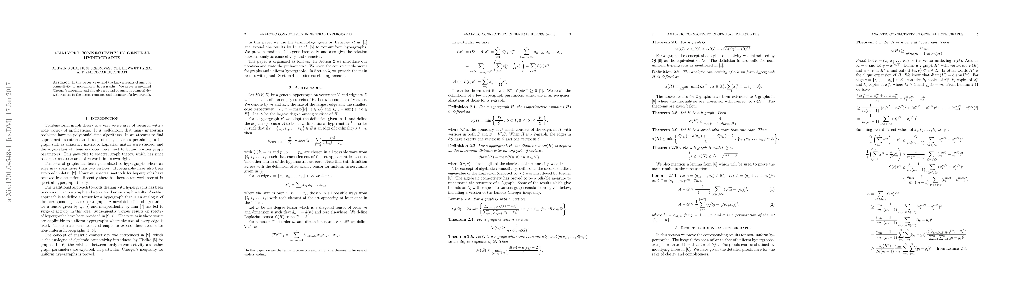 This paper extends analytic connectivity results to non-uniform hypergraphs, proving a modified Cheeger's inequality and providing a bound on analytic connectivity based on the hypergraph's degree sequence and diameter.