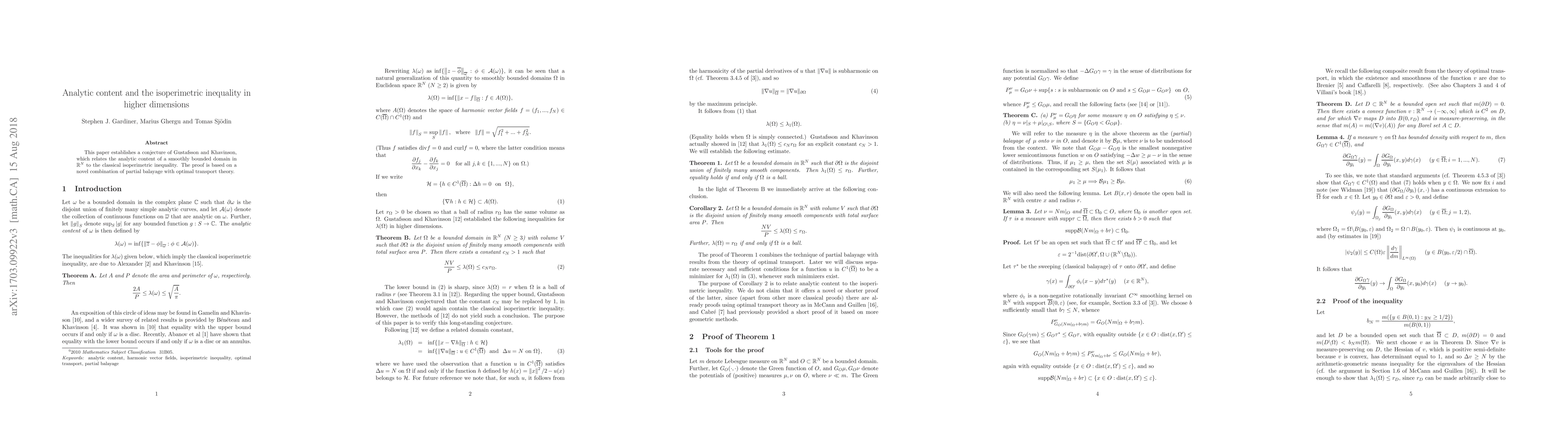 This paper confirms the conjecture linking the analytic content of smoothly bounded domains in higher dimensions to the isoperimetric inequality, utilizing a novel fusion of partial balayage and optimal transport theory.