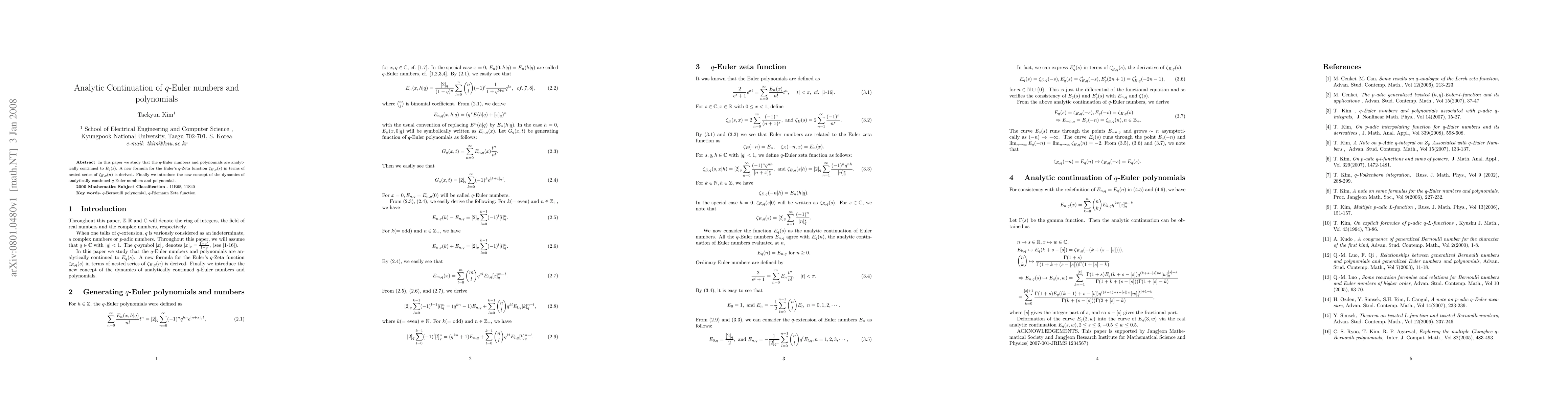 Researchers analytically continued $q$-Euler numbers and polynomials to derive a new formula for the $q$-Zeta function, introducing a concept of dynamics for these extended mathematical objects.